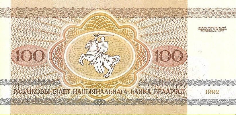 - Номинальная стоимость: 100 Br - белорусский рубль