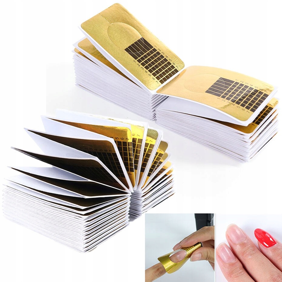 Узкие золотые шаблоны для ногтей 100 шт.