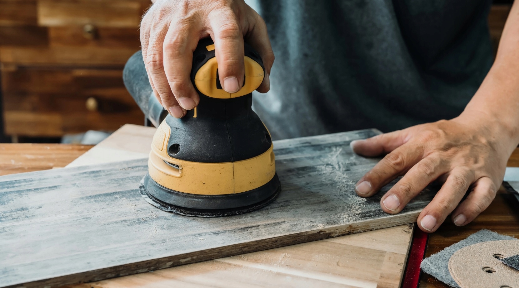✅ Выравнивайте большие поверхности с помощью орбитальной шлифовальной машины