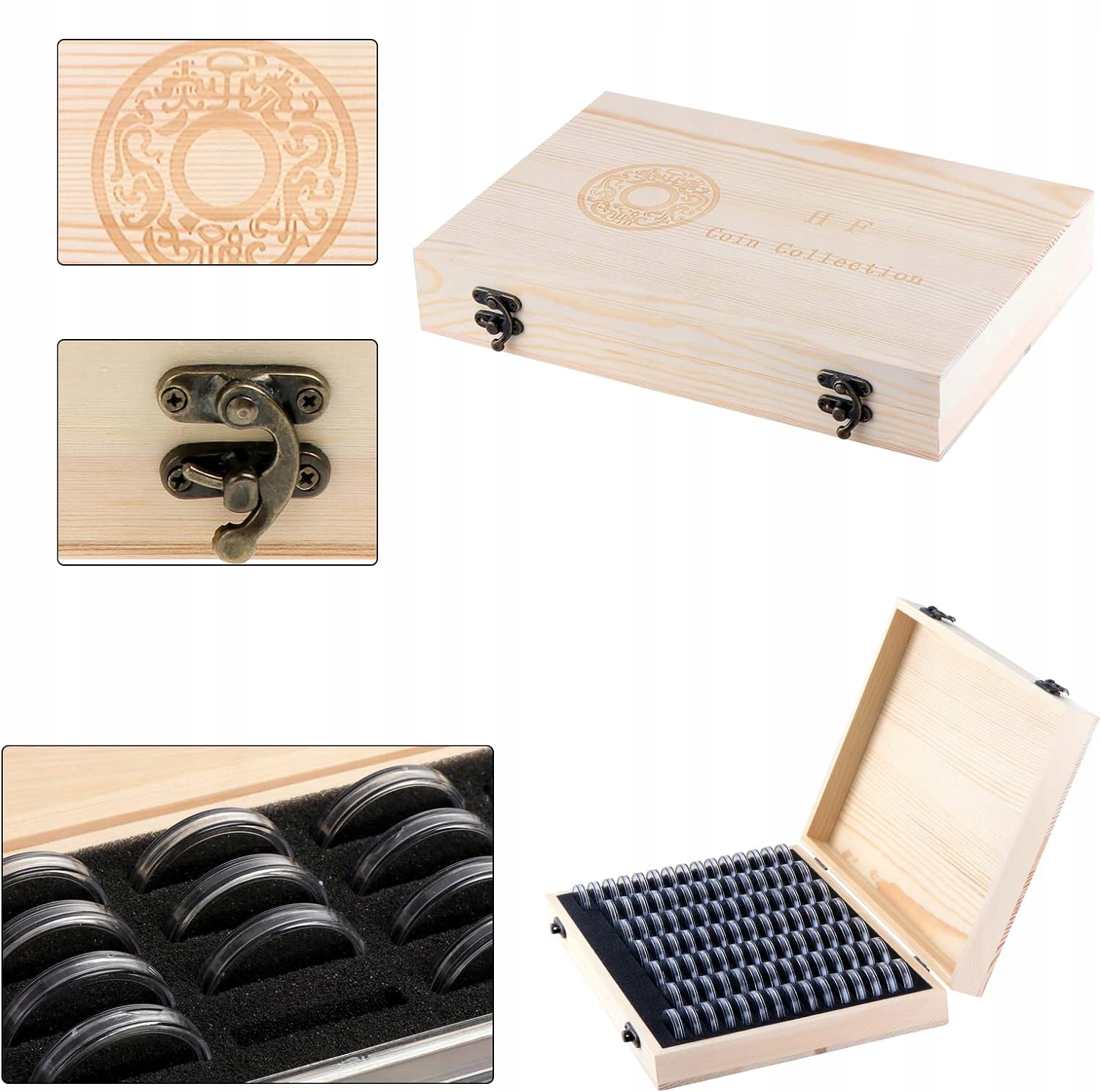 ЯЩИК ДЛЯ ХРАНЕНИЯ КОЛЛЕКЦИИ МОНЕТ: Размер ящика для монет составляет прибл. 280 x 190 x 45 мм, изготовлены из высококачественной сосновой древесины, вмещают 100 пластиковых капсул для монет, прозрачные капсулы для монет облегчают хранение, просмотр и обмен монет. Деревянная монетница практична и долговечна, отлично подходит для защиты капсул для монет, поддержания их в чистоте и порядке.