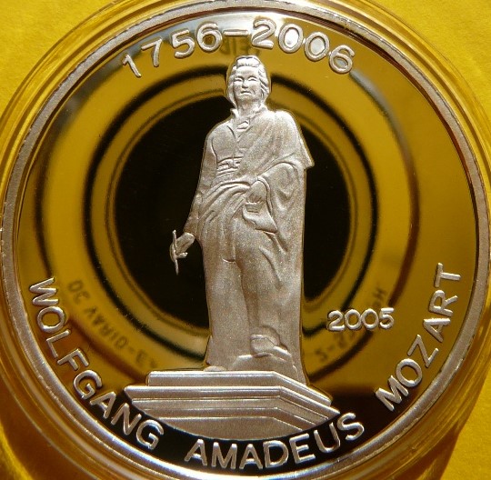 ВЫСТАВЛЕНА НА АУКЦИОН КРАСИВАЯ ОРИГИНАЛЬНАЯ И РЕДКАЯ КОЛЛЕКЦИОННАЯ СЕРЕБРЯНАЯ МОНЕТА - 1000 ФРАНШ - БЕНИН 2005 ГОДА - КОМПОЗИТОР ВОЛЬФГАНГ АМАДЕЙ МОЦАРТ - ЧИСТОЕ СЕРЕБРО 999 - PROF - РЕДКАЯ РЕДКАЯ - ТОЛЬКО МИНИСТЕРСТВО 2500 ШТ. !! + СЕРТИФИКАТ ПОДЛИННОСТИ - НА ДРУГИХ АУКЦИОНАХ Я ПРЕДЛАГАЮ ВСЕ МОНЕТЫ ИЗ ЭТОЙ СЕРИИ - ПОЖАЛУЙСТА, ПОСМОТРЕТЬ