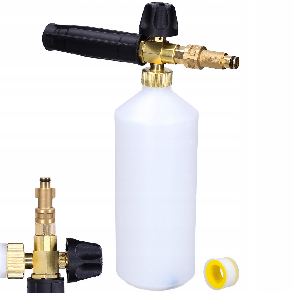 Пеногенератор оснащен быстродействующим разъемом, используемым в стиральных машинах Bosch. Пластиковый резервуар для воды вмещает 1 литр чистящих средств. Он изготовлен из полупрозрачного материала, что позволяет полностью контролировать уровень жидкости внутри устройства.