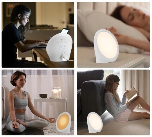 - Отсутствие вредных для кожи ультрафиолетовых лучей. Цветовая температура Солнца через 0-1 час после восхода солнца составляет около 1850К-3000К, что является наиболее комфортной яркостью в природе в течение дня. Терапевтическая лампа имитирует естественный свет, позволяя вам чувствовать тепло солнца даже зимой, улучшая плохое настроение и повышая энергию.