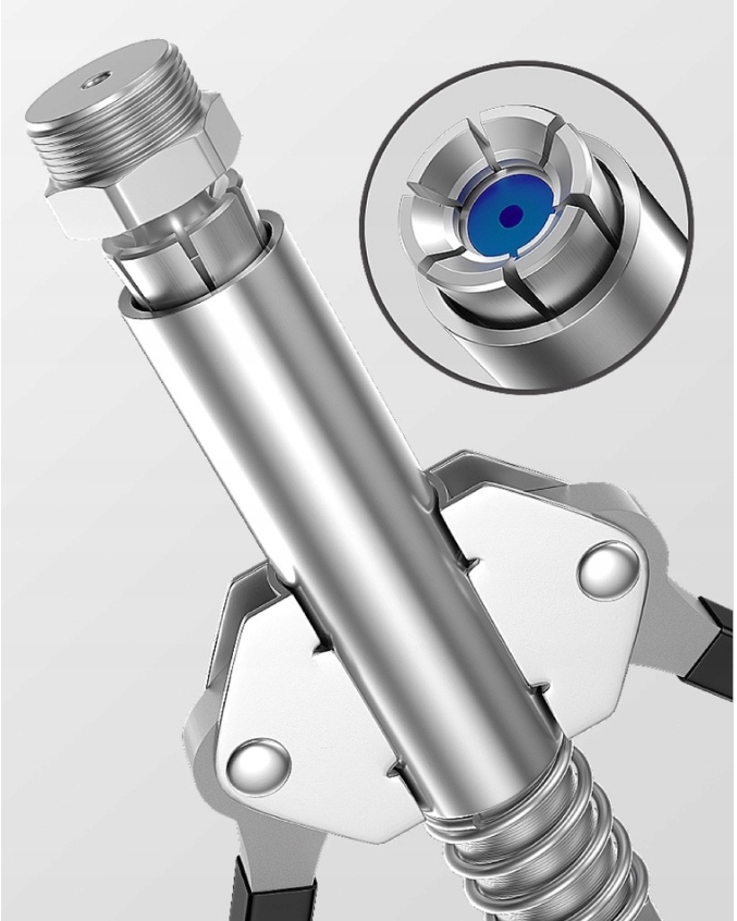 Наконечник нашего шприца для смазки изготовлен из оцинкованной легированной стали, что обеспечивает большую долговечность, более толстые пружины обеспечивают более сильное запирающее усилие и предотвращают утечку, больше никакой смазки повсюду и никаких отходов.