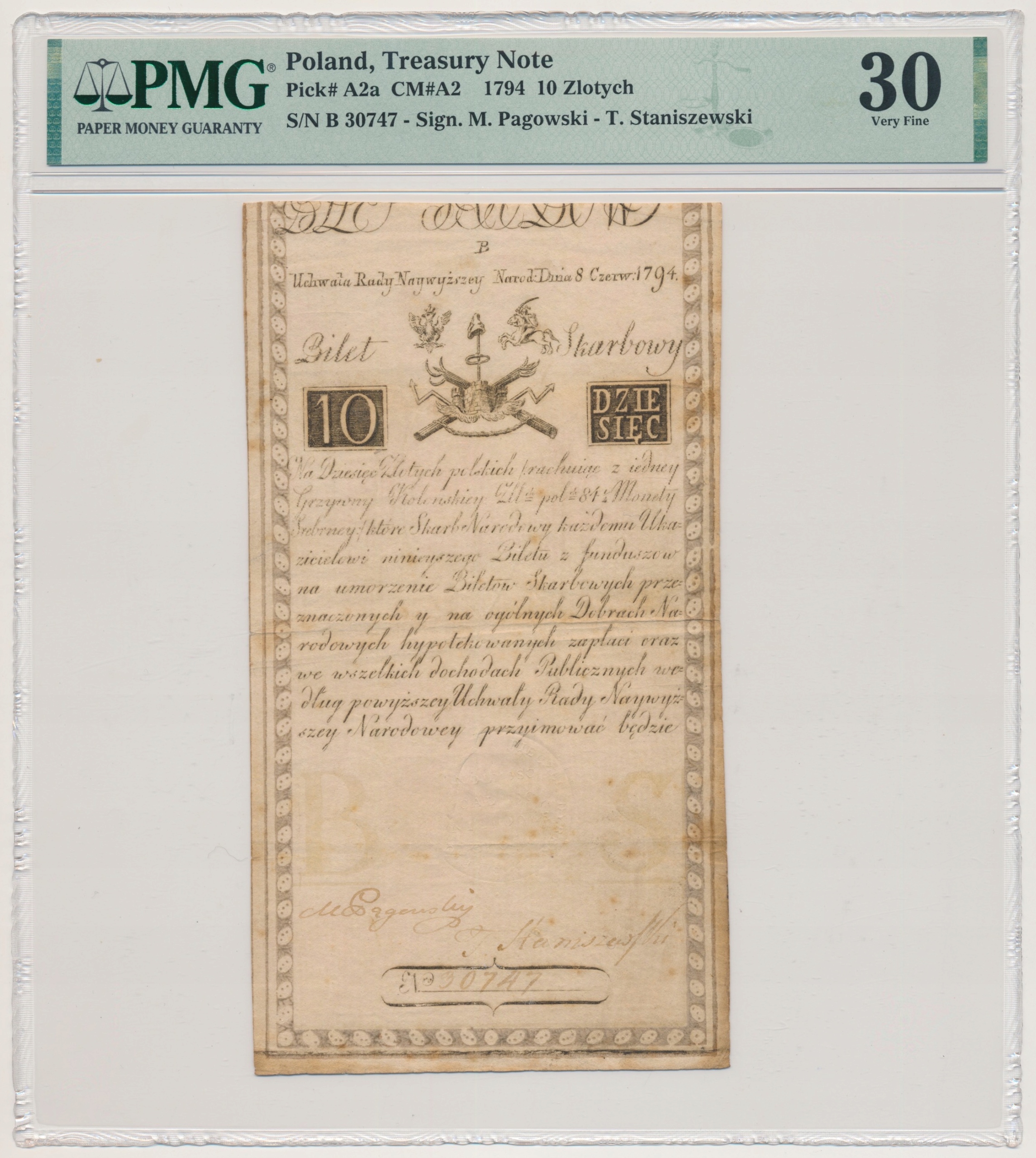 Просматривая «10001. 10 1794 злотих - B - PMG 30», вы можете быть уверены, что данный товар из каталога «до 1915 года» будет доставлен из Польши и проверен на целостность. В цене товара, указанной на сайте, учтена доставка из Польши. Внимание!!! Товары для Евросоюза, согласно законодательству стран Евросоюза, могут отличаться упаковкой или наполнением.