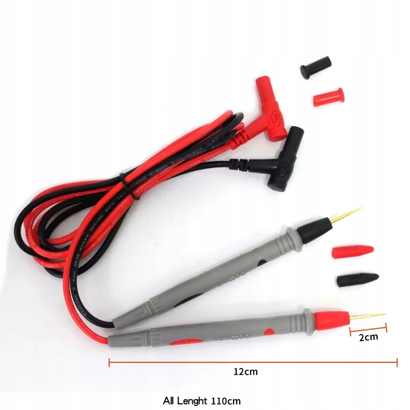 Высококачественные измерительные провода длиной 90 см для использования в мультиметрах со стандартным разъемом типа «банан». Тонкие кончики игл для точных измерений, длиной около 2 см, весь зонд длиной около 15 см и хорошо лежит в руке. На концах кабелей имеются штекеры типа «банан», подходящие к большинству мультиметров.