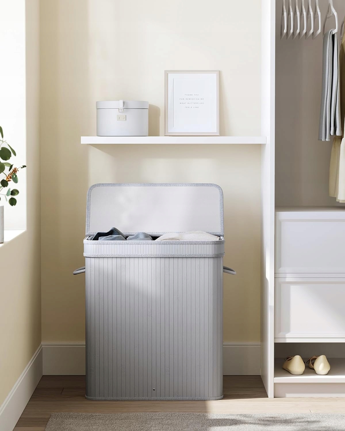 100L бамбуковая серая корзина прачечной