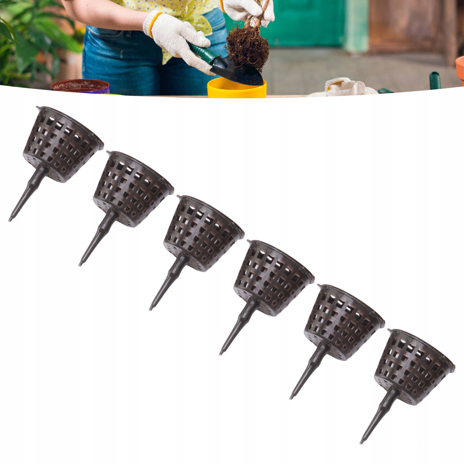 1. Садовая корзина: Изготовлена из высококачественного пластика, количество можно регулярно проверять. Просто вставьте головку, наполненную органическими веществами, в верхний слой почвы.