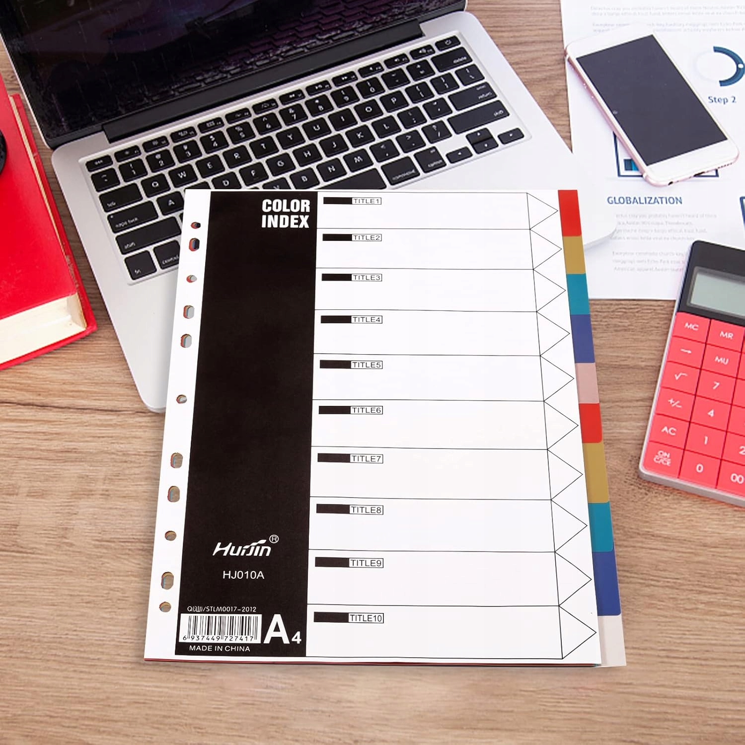 100szt PRZEKŁADKI PLASTIKOWE KOLOROWE INDEKSUJĄCE DO SEGREGATORA A4 1-10