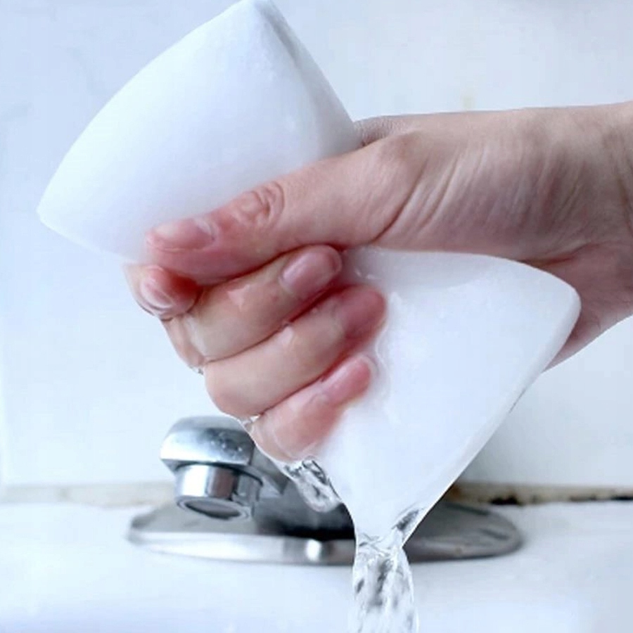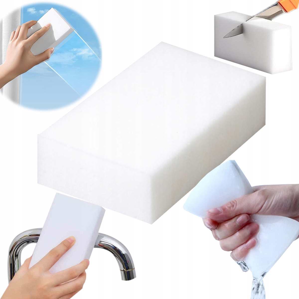 Волшебная губка изготовлена из материала, называемого меламиновой пеной. Меламин — это инновационный продукт, используемый в чистящих аксессуарах. Этот материал очень экономичен, его можно использовать многократно без добавления моющих средств, с водой или без нее.