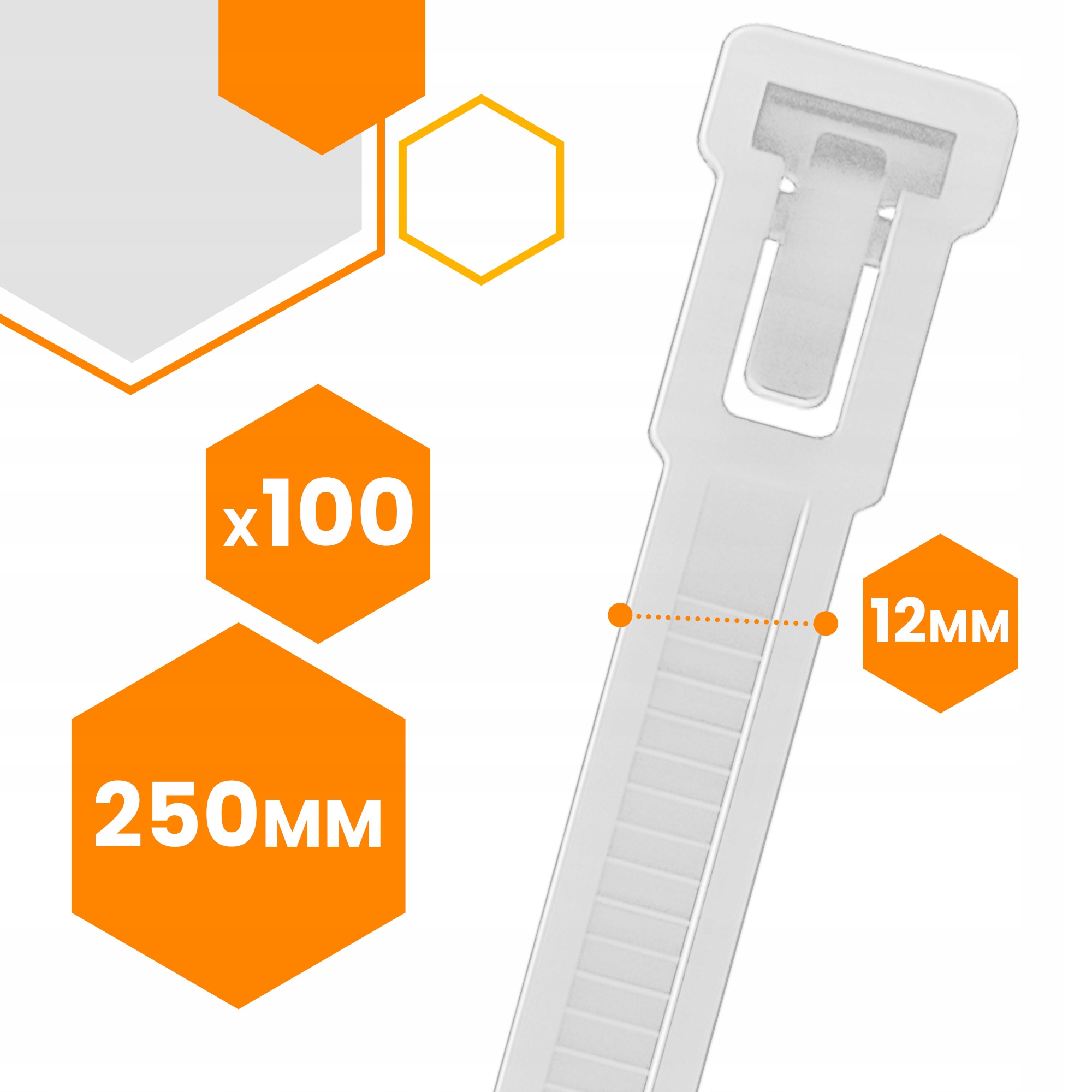Стяжка многоразовая 8 мм х 250 мм белая 100 шт