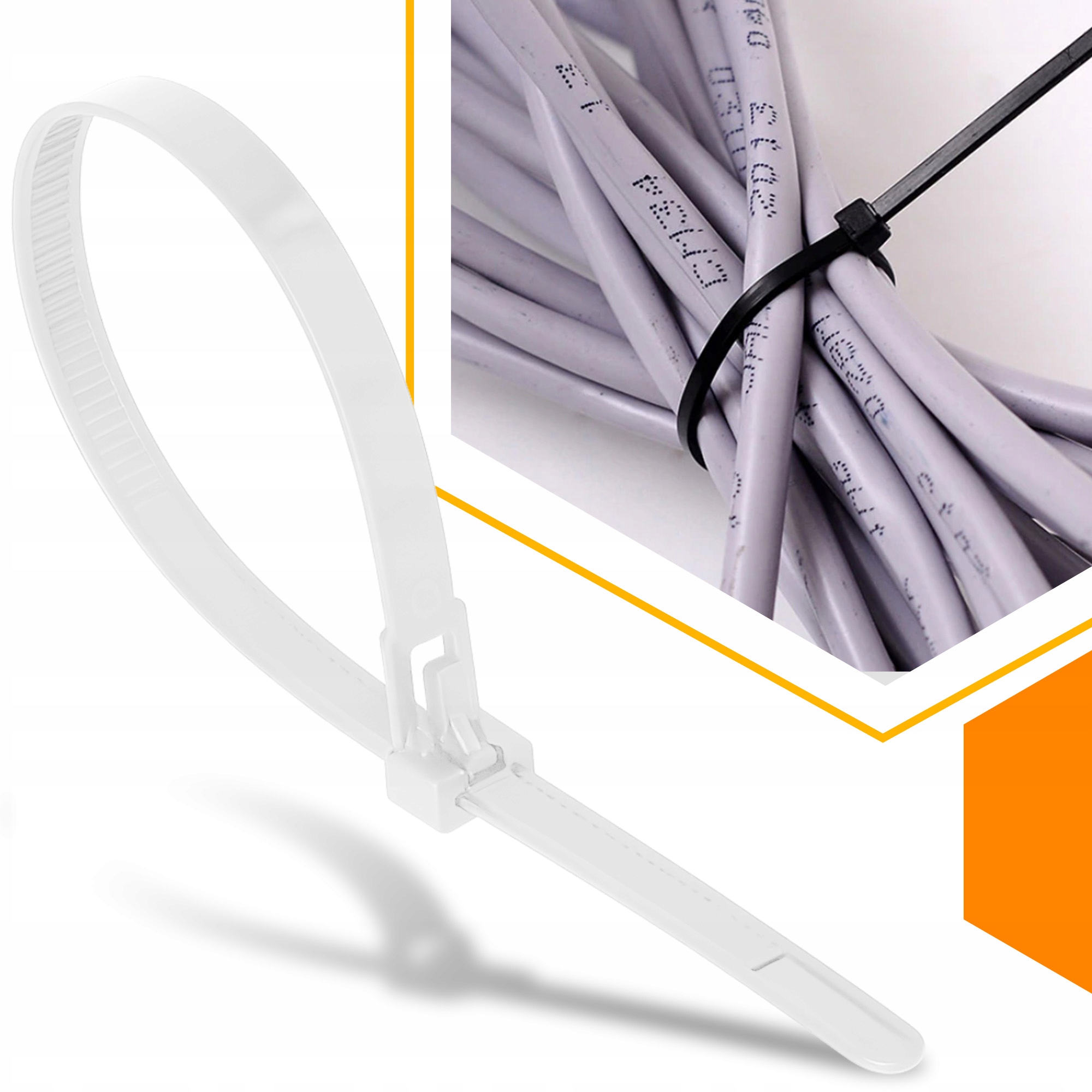 Изготовленный из прочного нейлона, он устойчив к высоким температурам и обладает электроизоляционной функцией. Он очень устойчив к растрескиванию и разрушению. Его самым большим преимуществом является возможность быстро открывать и повторно затягивать, что делает его удобной альтернативой одноразовым зажимам.
