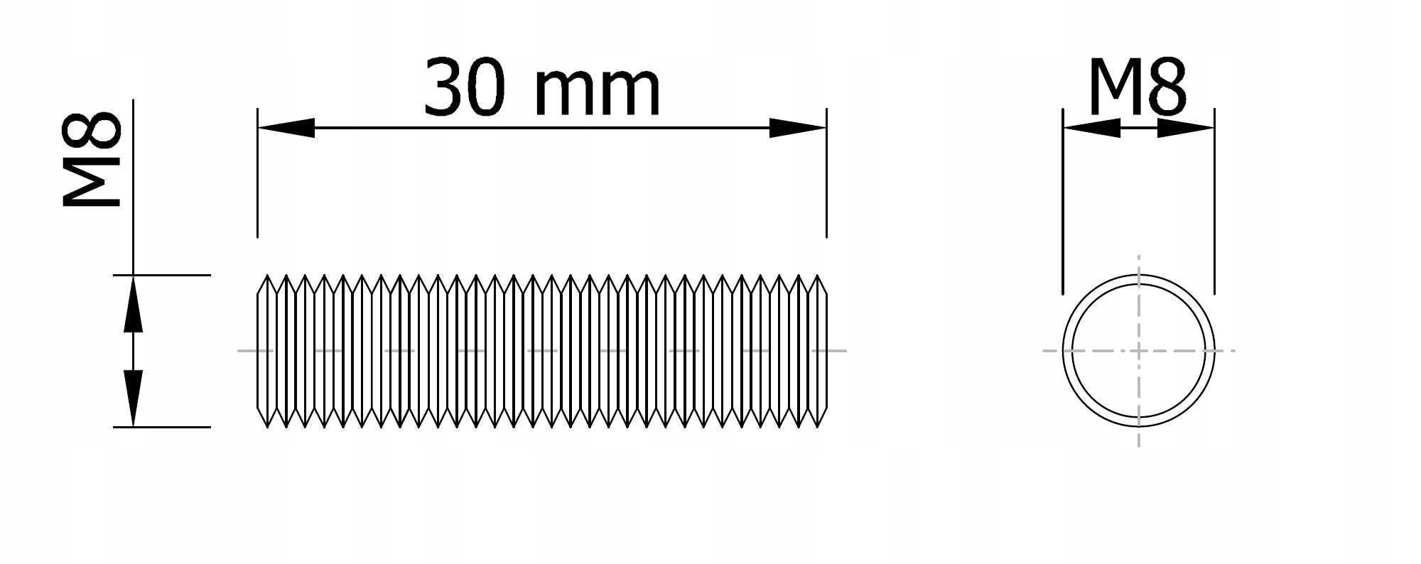 100x Метричний штифт, різьбовий штифт M8 x 30
