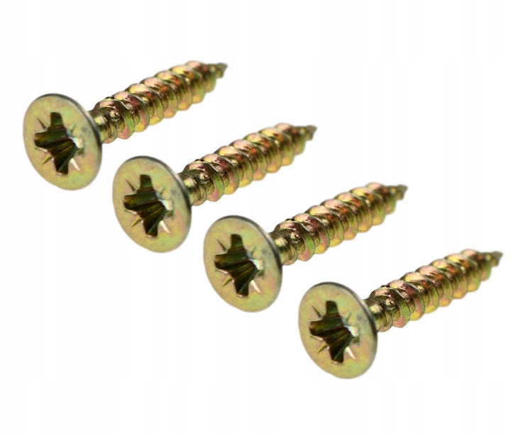 Винты для дерева с потайной головкой, желтое цинковое покрытие. Шуруп закаленный/закаленный, предназначен для соединения мебели и обивки, а также со стальными уголками, фурнитурой для кроватей, полочными опорами – имеются в нашем предложении. Конический винт имеет насечку под крестовую отвертку.