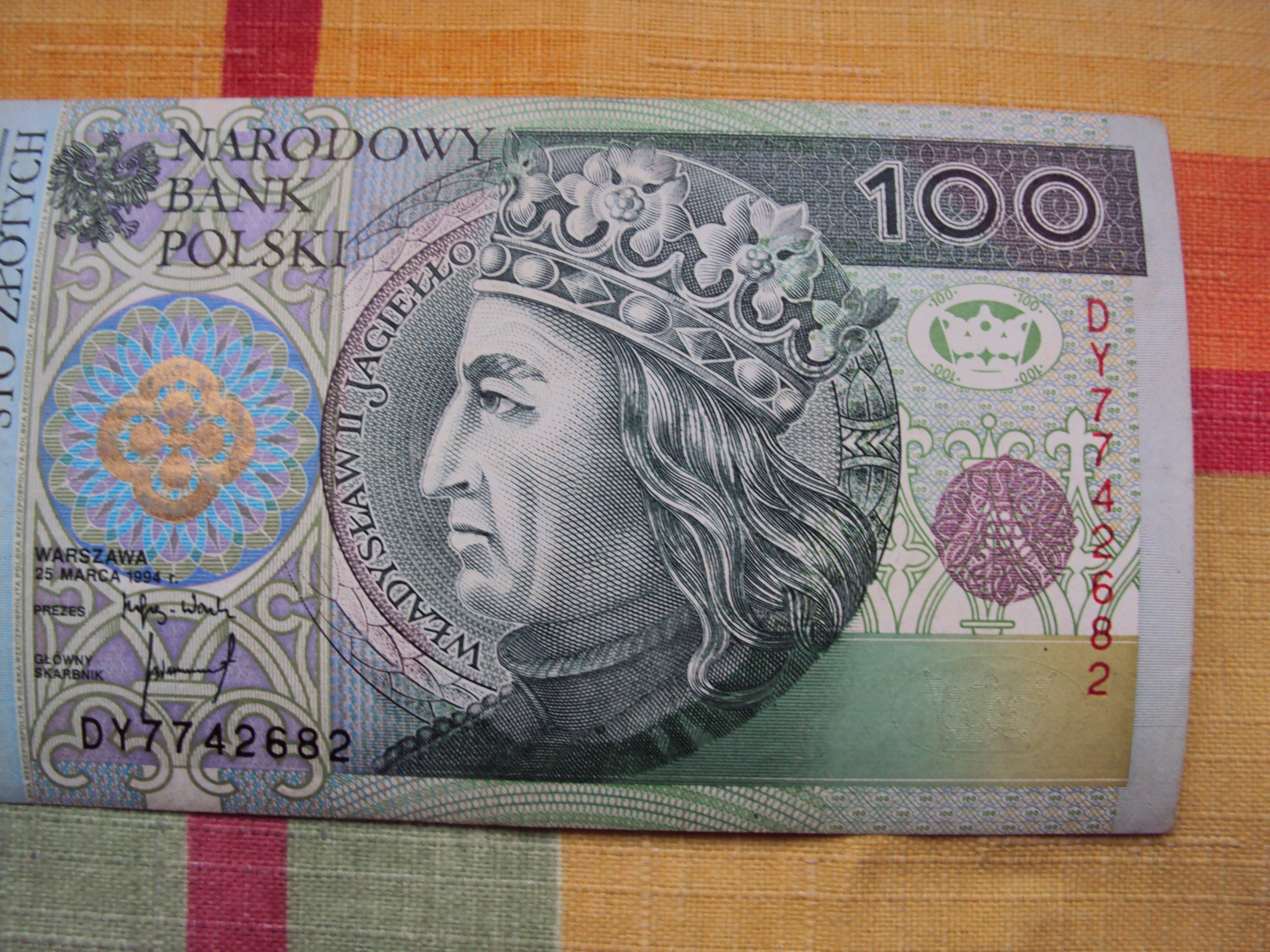 100 злотых 1994 года, серия DY из обращения