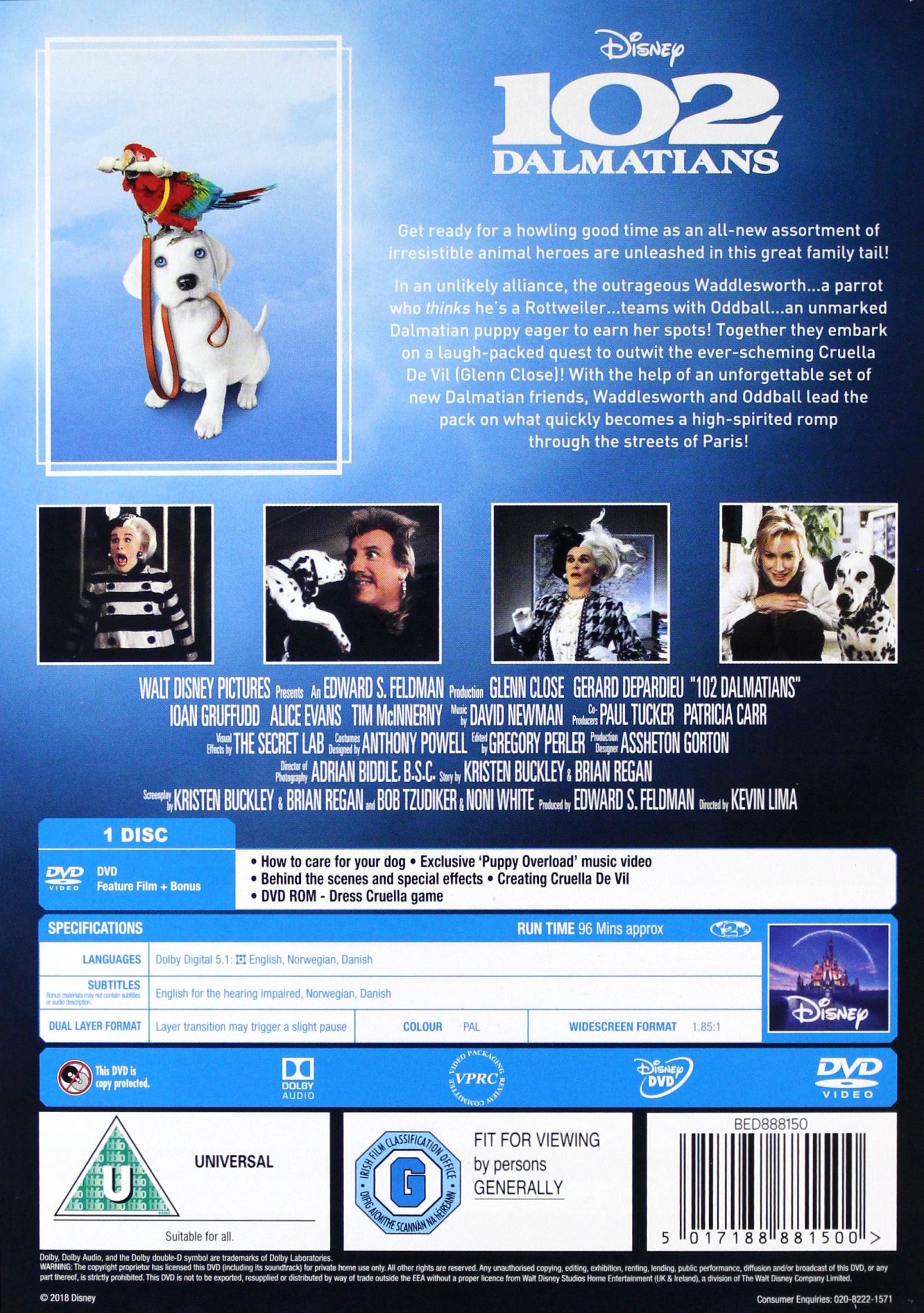 Герой этой веселой комедии Диснея — Альби, маленький далматинец, упорно ищущий свои пятна, которые он незаконно добыл. лишенный при невыясненных обстоятельствах, и Болтливый, остроумный попугай ара, глубоко убежденный в том, что он ротвейлер. Эта буйная и оригинальная пара возглавляет разношерстную команду щенков, пытающихся перехитрить злодейку и всегда коварную Круэллу Де Виль (удивительную Гленн Клоуз).