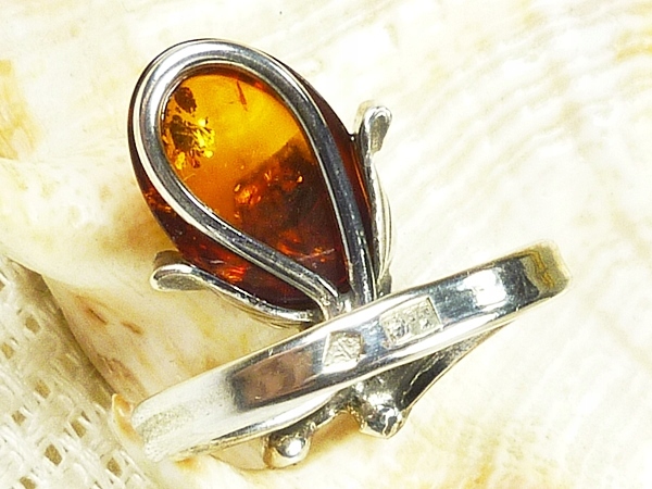 103/13 Срібна каблучка з бурштином - 14 розмір