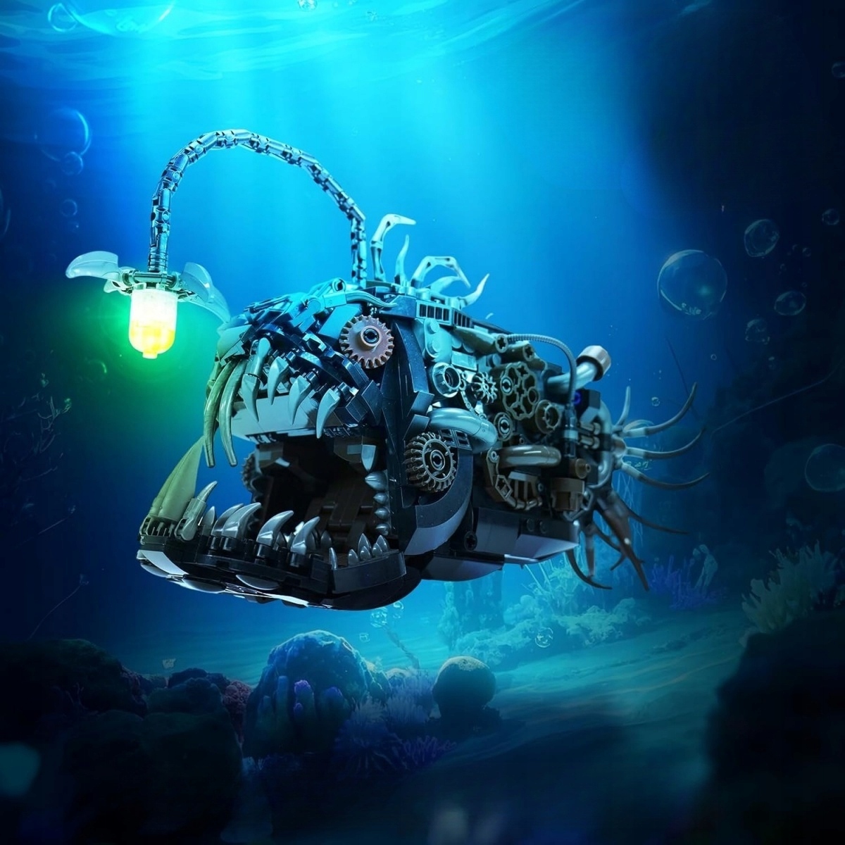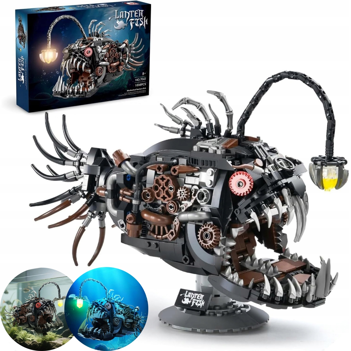 Механические конструкторы в форме рыбы-фонаря. Совместим с набором Animal Lantern Fish — идеальным украшением океана MOC для вашего дома/офиса. STEM-подарок для детей и взрослых от 8 до 16 лет. 1038 объектов.
