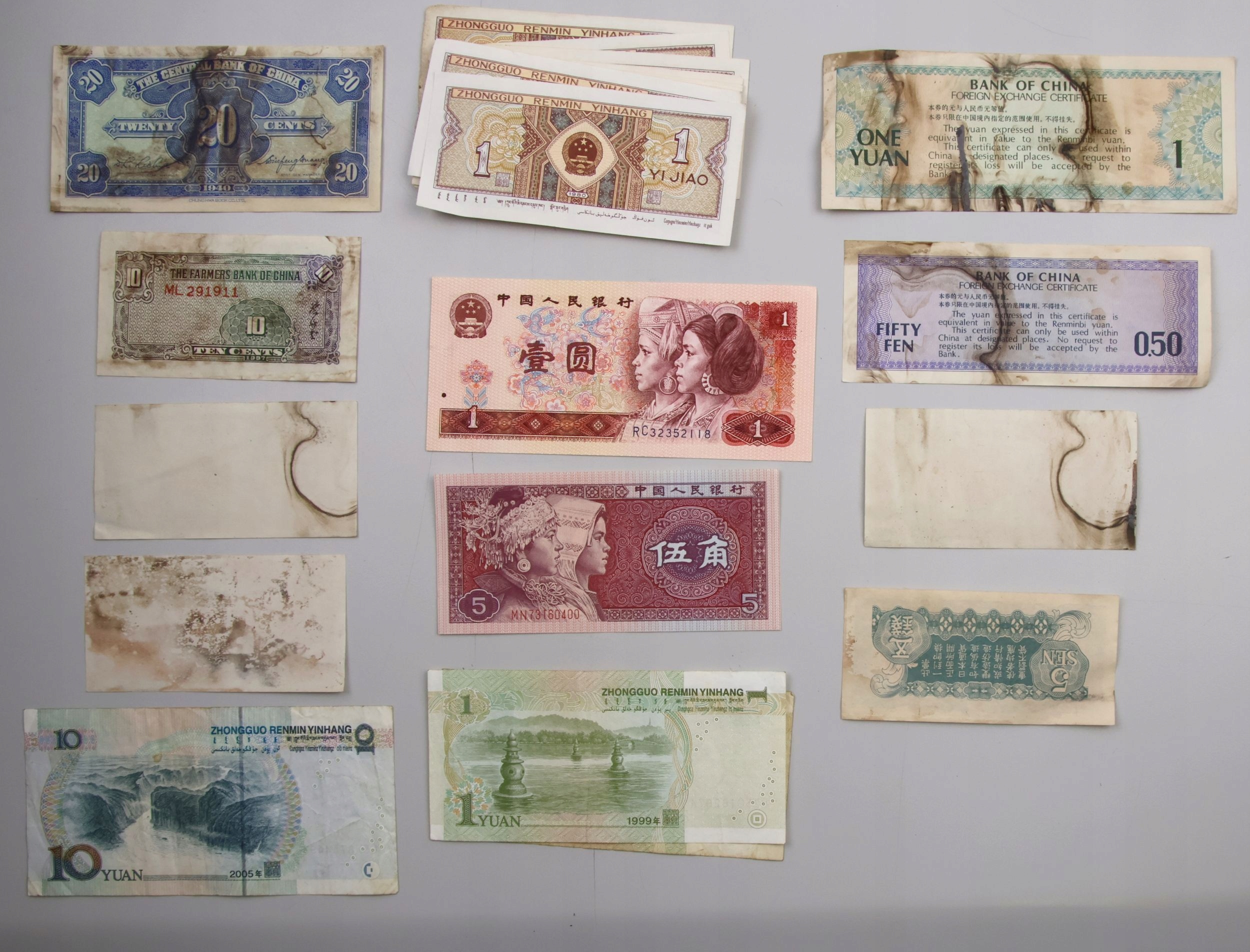 105. Chiny, zestaw 45 sztuk banknotów, mix