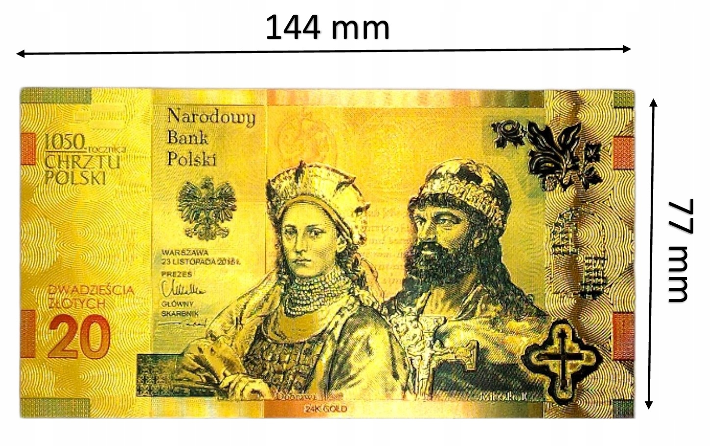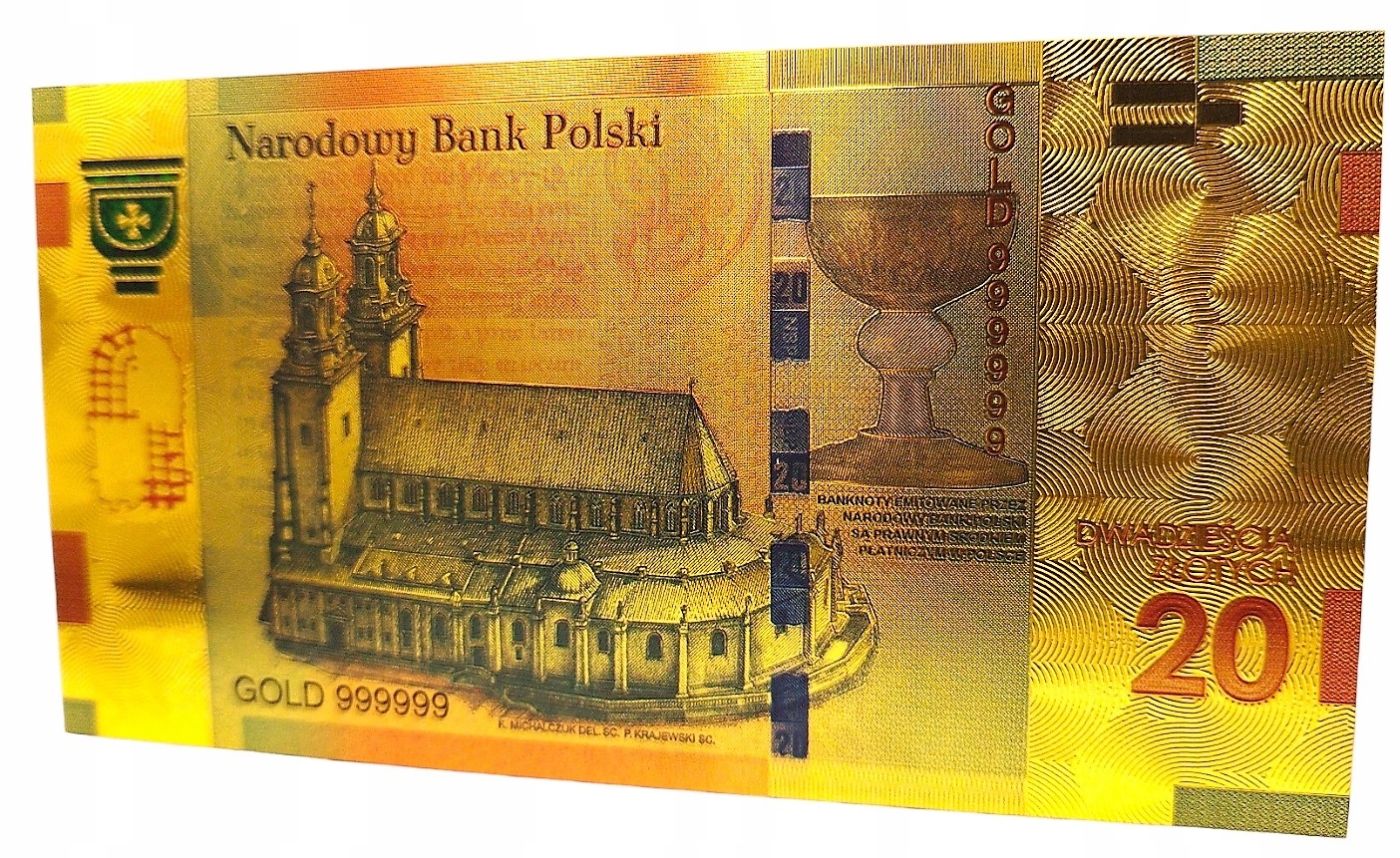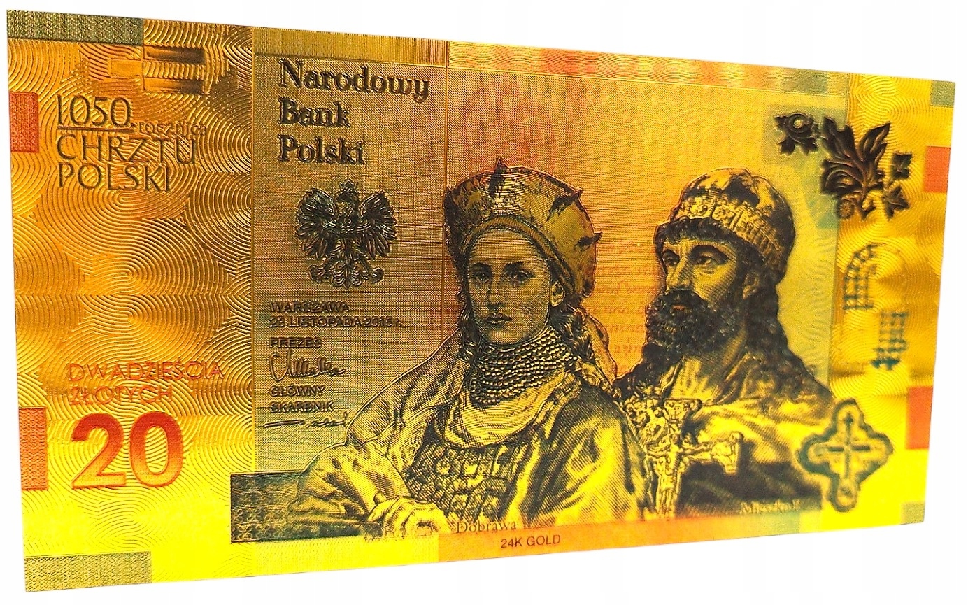 1050 РОКІВ ХРЕЩЕННЯ ПОЛЬЩІ 20 PLN Прекрасна позолочена банкнота ЧУДОВО ДЛЯ КОЛЕКЦІЇ