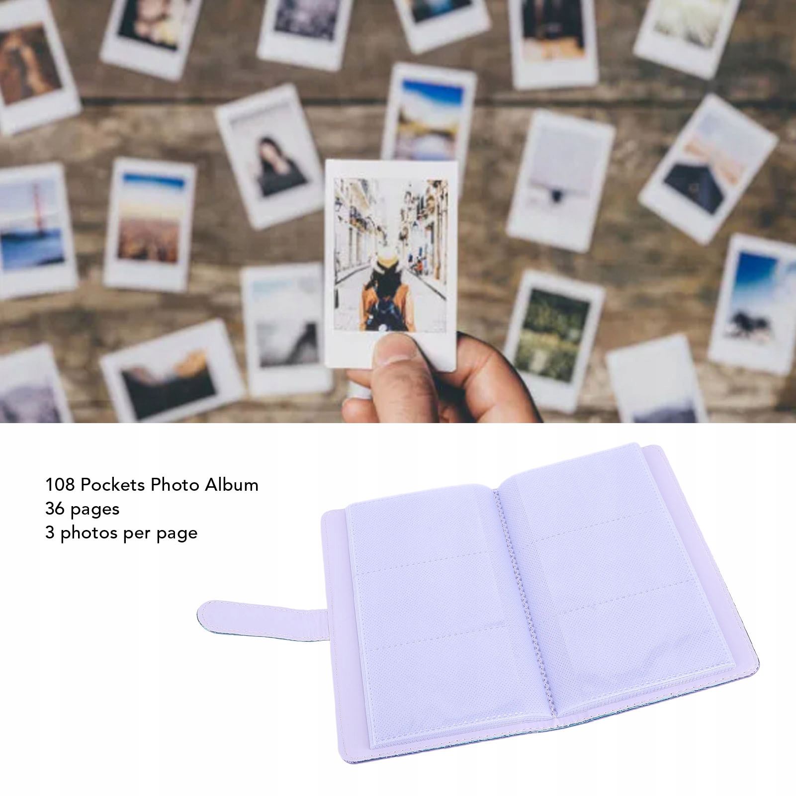 1. Применимая модель: 108 карманов фотоальбомов подходит для Mini 12 11 9 Фотографии с камер, а также кредитные карты, карты, билеты на кино, визитные карточки и другие.