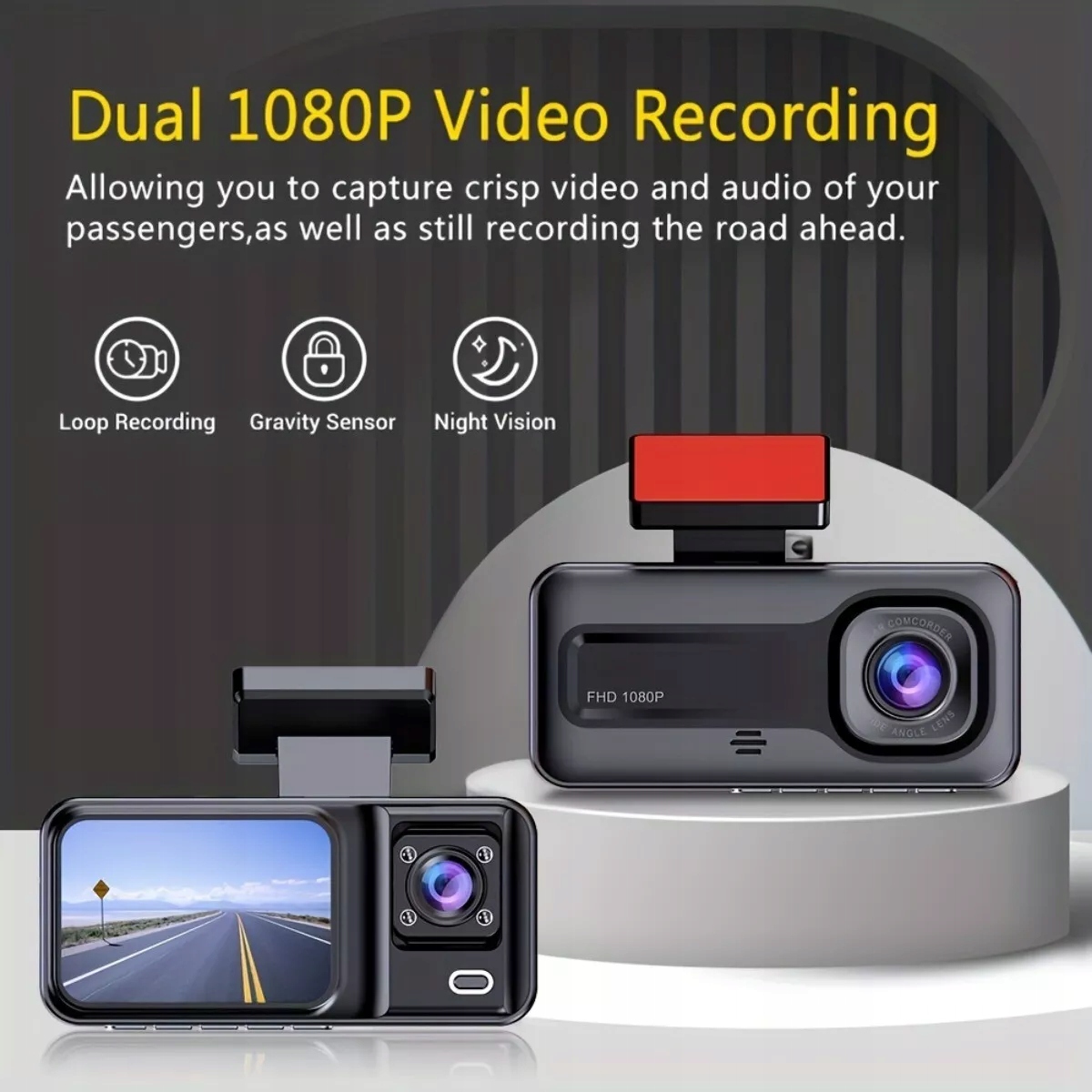 1080p Dual Lens Chans Cam с устройством ночного видения и автомобильным датчиком для автомобиля, Black