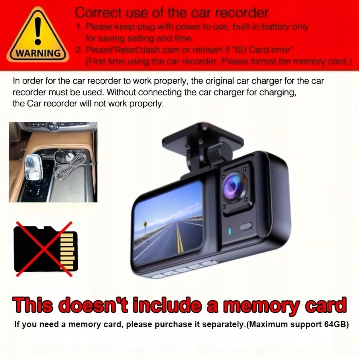 [Dash Cam спереди и сзади] В случае F/2.0 Technology и WDR (широкая динамика) в сочетании с 4 инфракрасными огнями, автомобильная камера хорошо справляется с точностью цветов и выразительности как в течение дня, так и в ночную машину