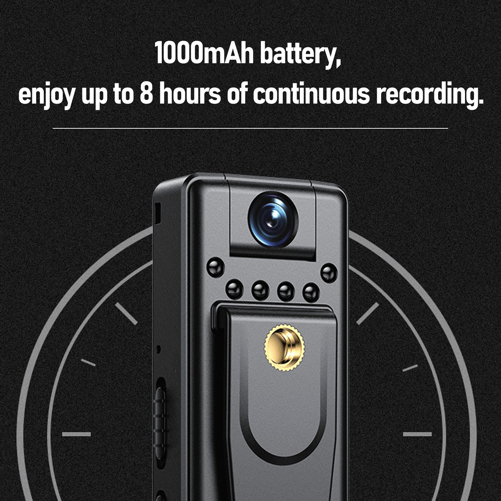 5. Длительное срок службы батареи: встроенная в большую батарею 1000 мАч -мопор, обеспечивая 8 часов непрерывной записи. Поддерживает зарядку во время регистрации и сохраняет данные во время сбоя питания.