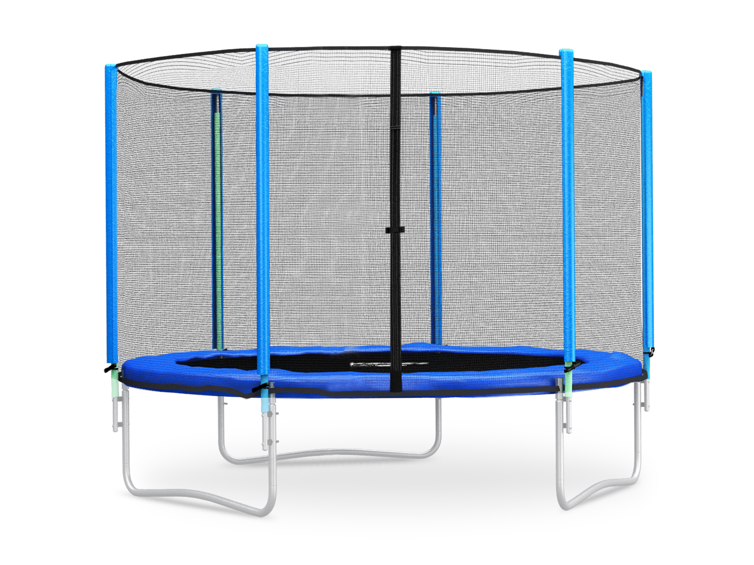 ✔ Быстрый монтаж - b > крепится к батуту путем установки туннелей на стойки, закрепленных внизу веревкой к раме батута (веревка входит в комплект). Сетка имеет вертикальный вход, закрывающийся на молнию.