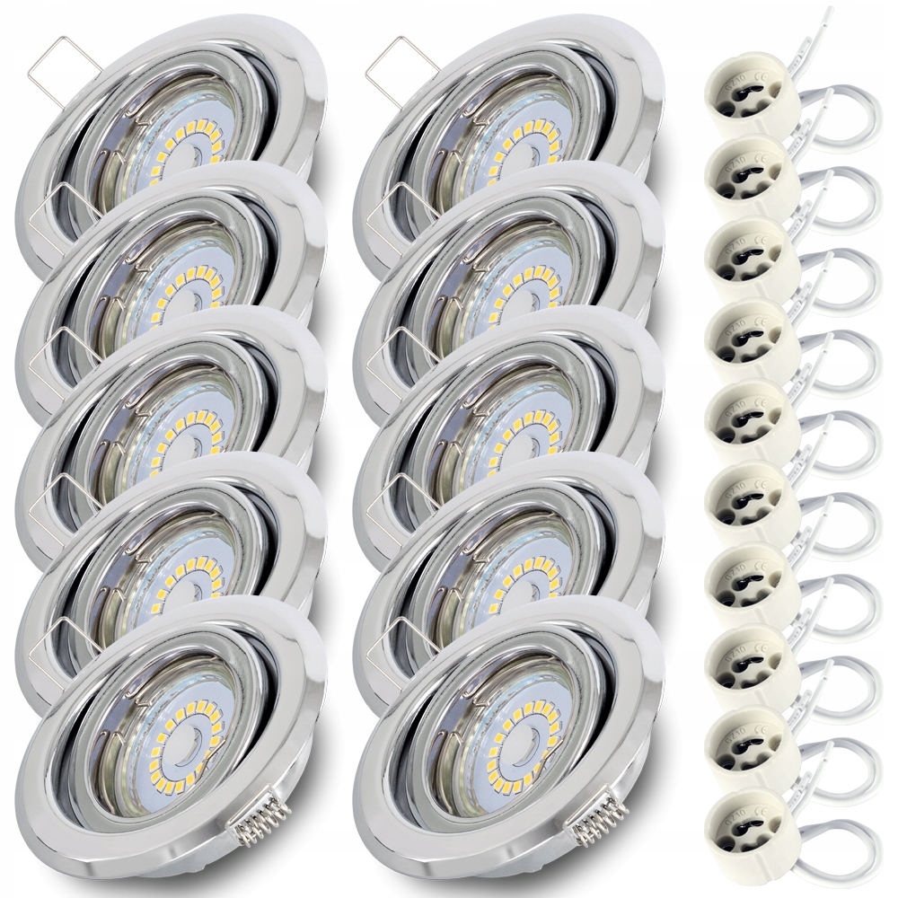 НАБОР ОСВЕЩЕНИЯ: ПОДВИЖНЫЙ хромированный встраиваемый светильник, лампа SMD LED GU10 5W 3000K, патрон GU10.
