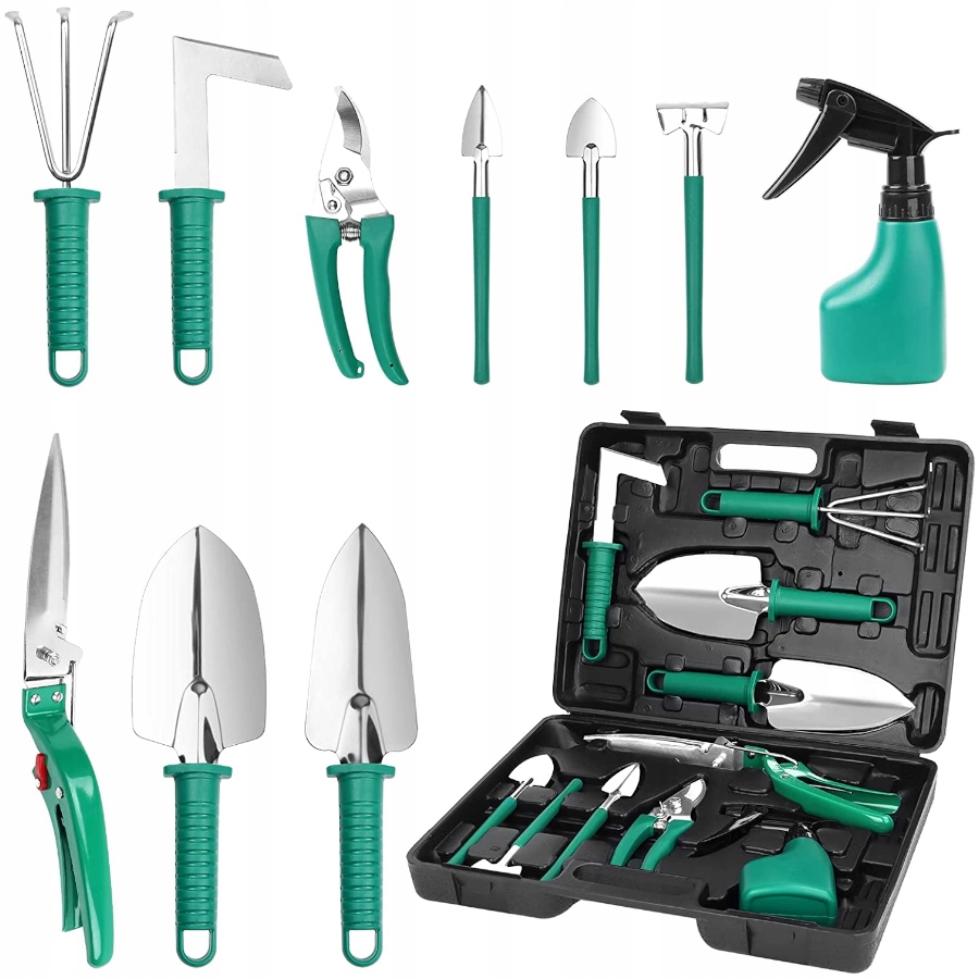 ✅ Полный набор садоводства: садовые инструменты 10 штук. Все в чемодане, легко носить и хранить. Портативный чемодан содержит сформированные отверстия, идеальную организацию и защиту инструментов.