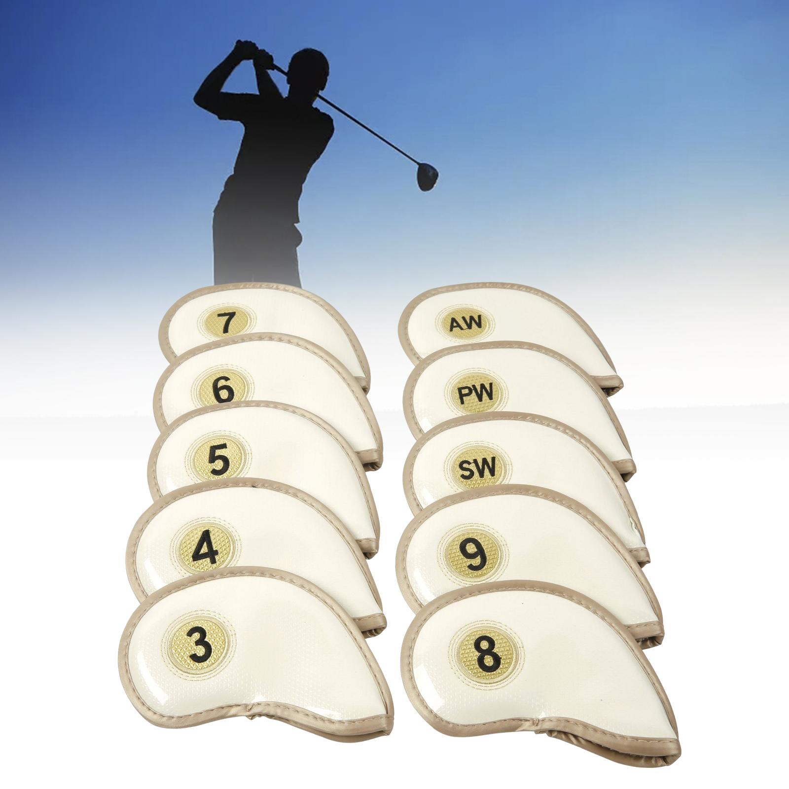 10 чехлов для головы с железом для гольфа, чехлы для клюшки для гольфа, защитный чехол, белый номер с вышивкой
