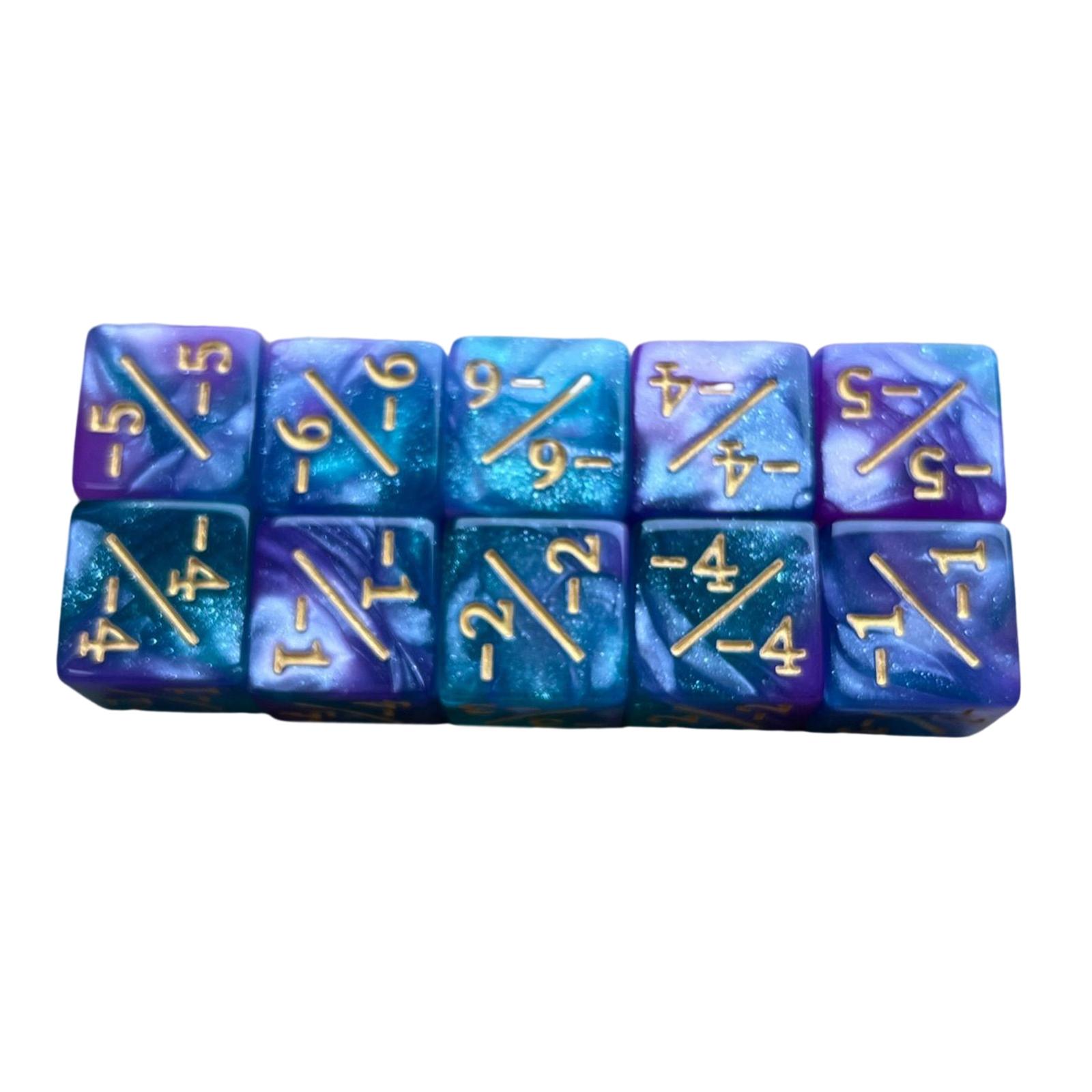 10шт шестисторонний кости, математический учебный аксессуар добавить вычтите зеленый цвет фиолетовым