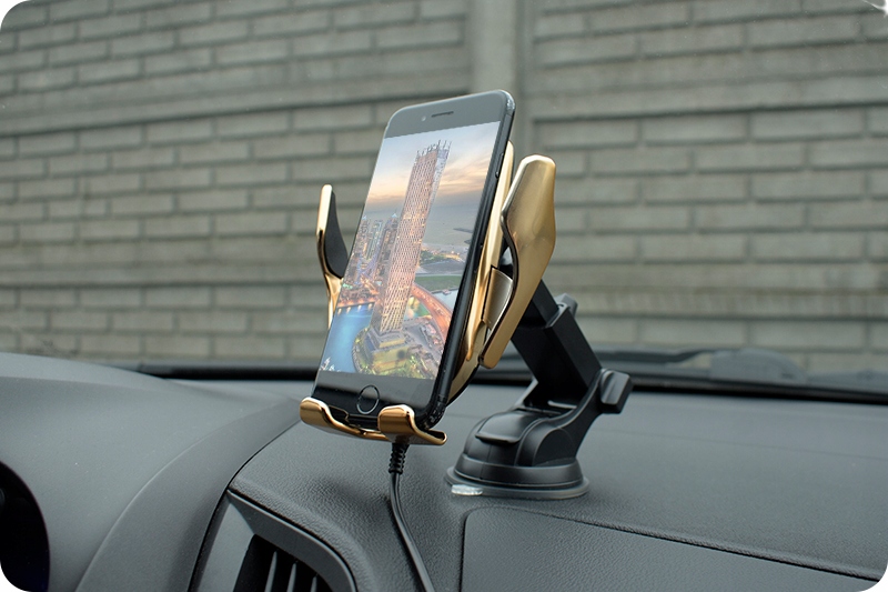 Этот автоматический держатель со встроенным индуктивным зарядным устройством позволит зарядить ваш телефон без необходимости подключения ЛЮБОГО кабеля, а также благодаря инфракрасному датчику и встроенному механизму. , он автоматически закроет SAM b> сразу после обнаружения телефона.