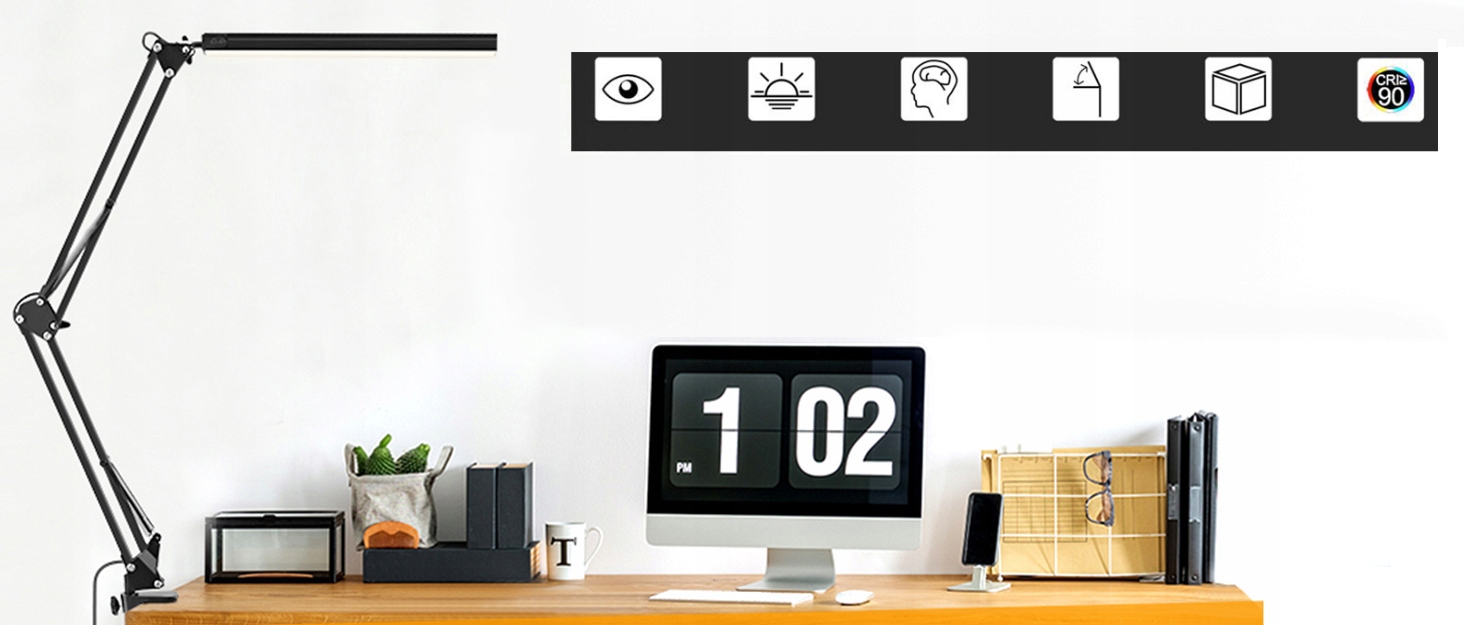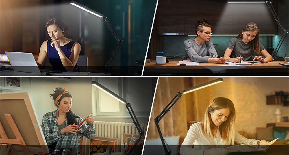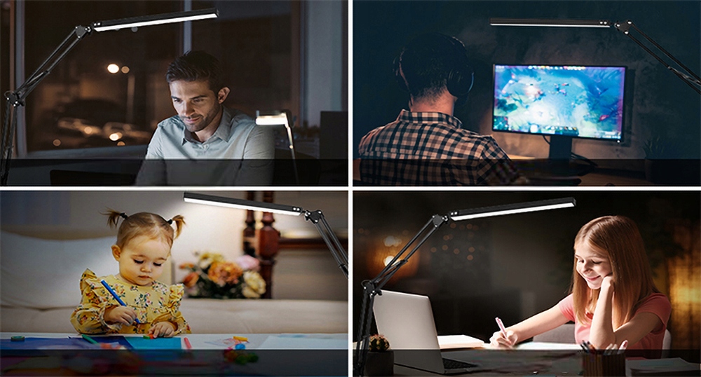 ☀ 【Современный минималистский стиль】 Офисная лампа современного вида, подходящая к вашему столу, комнате и мебели; Обеспечивает захватывающее освещение при работе, учебе, программировании, видеомонтаже, видеоконференциях и т. д. Регулируемый кронштейн и патрон лампы изготовлены из прочного алюминия и толстых пружин.
