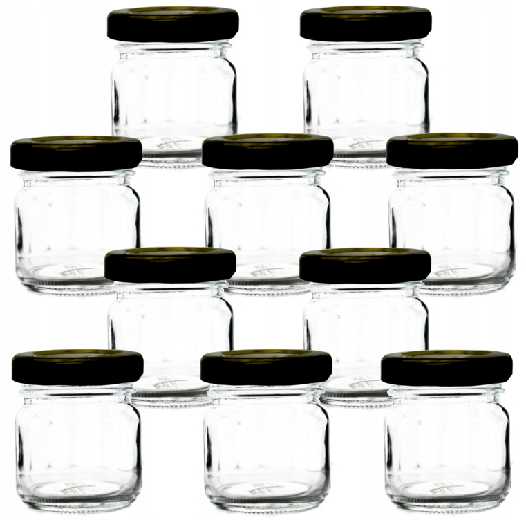 Банки стеклянные 40мл, 10 шт, крышки, черные, маленькие стеклянные баночки