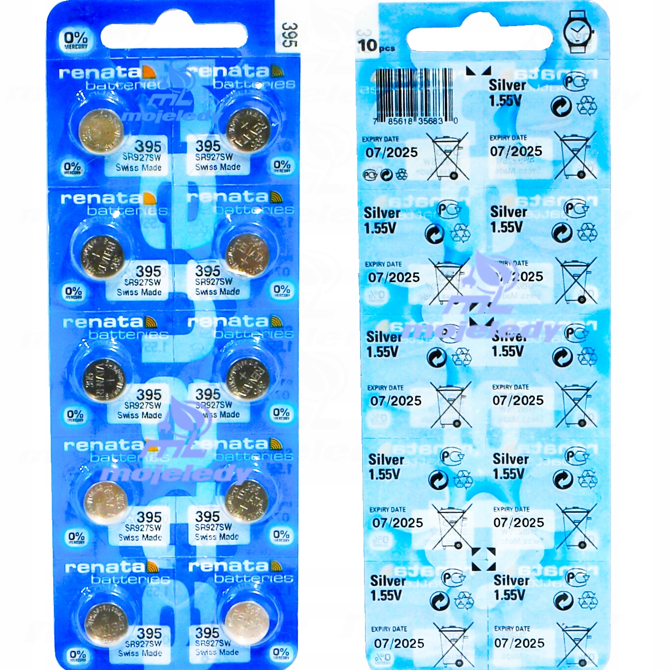 10x серебряная батарейка RENATA 395 SR927SW SR57 срок годности до 2027 года