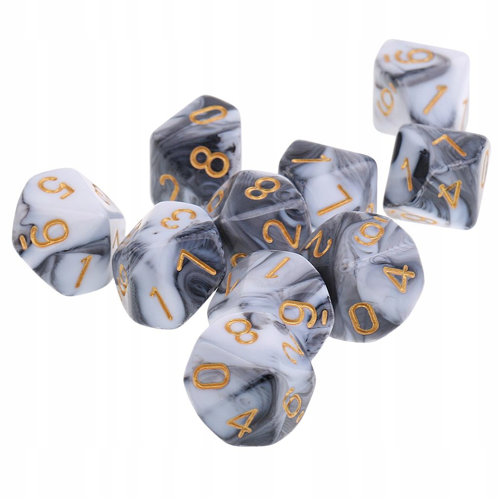 10X D10 Многогранные игральные кости для ролевых игр для вечеринок, белые, серые, 16 мм