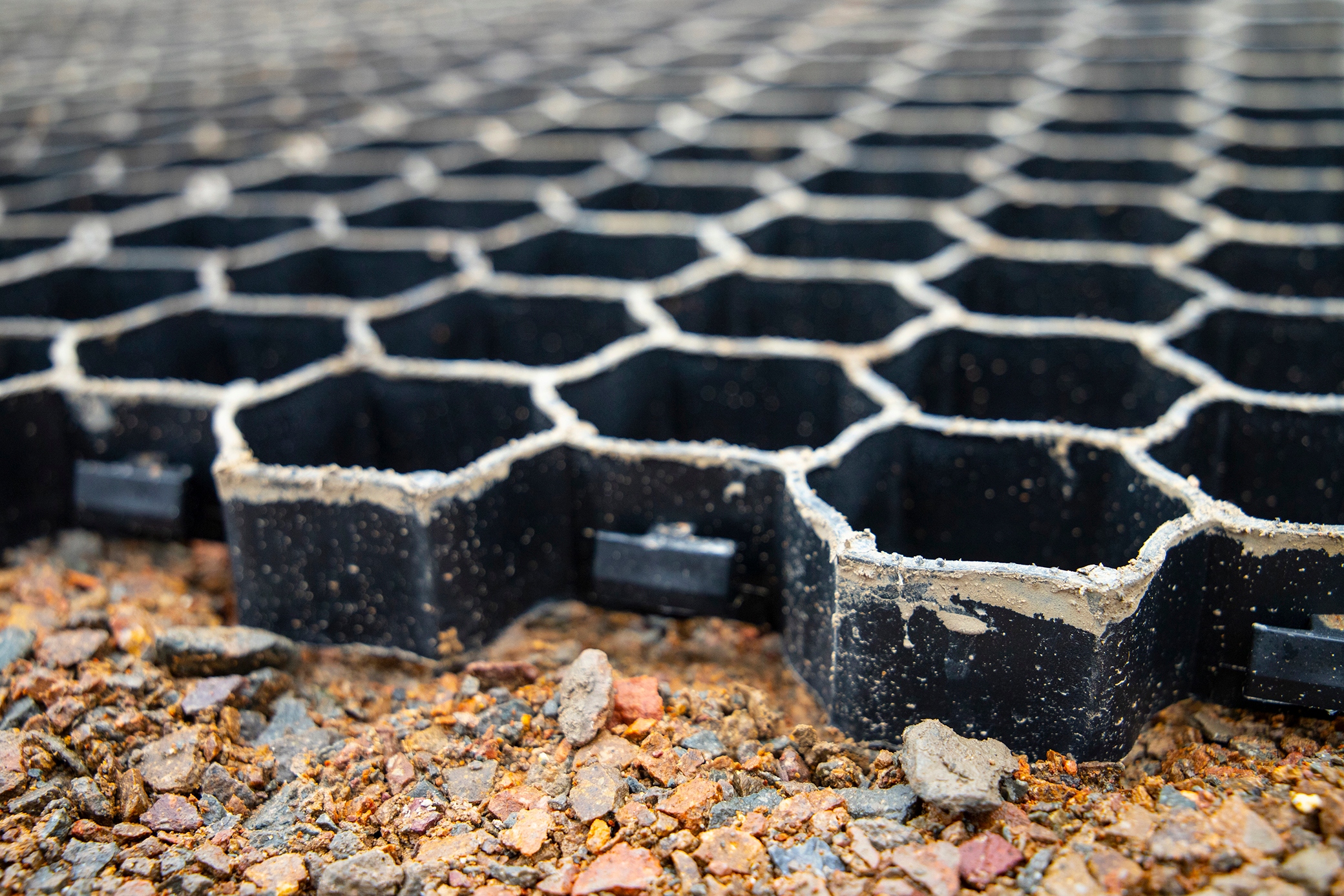 ✅ Контроль грязи! – Когда вода стекает вниз (благодаря гравитации!), она впитывается в землю. Гравийные подъездные пути создают грязные пятна и выбоины, но при использовании решетчатой системы вода стекает с поверхности.