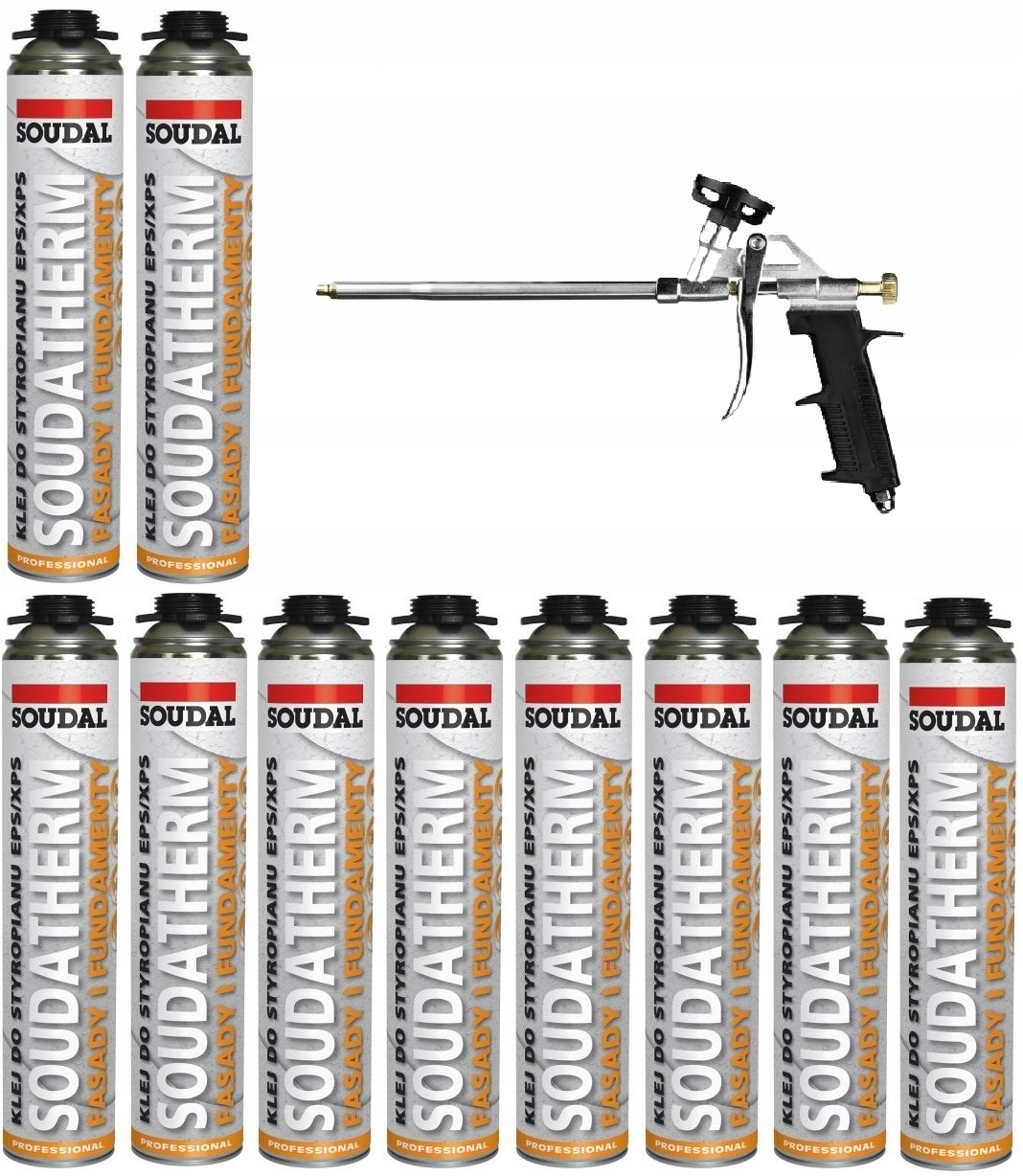 10x КЛЕЯ ПЕНЫ SOUDAL ДЛЯ ПЕНОСТРОЕНИЯ XPS EPS SOUDATHERM + ПИСТОЛЕТ