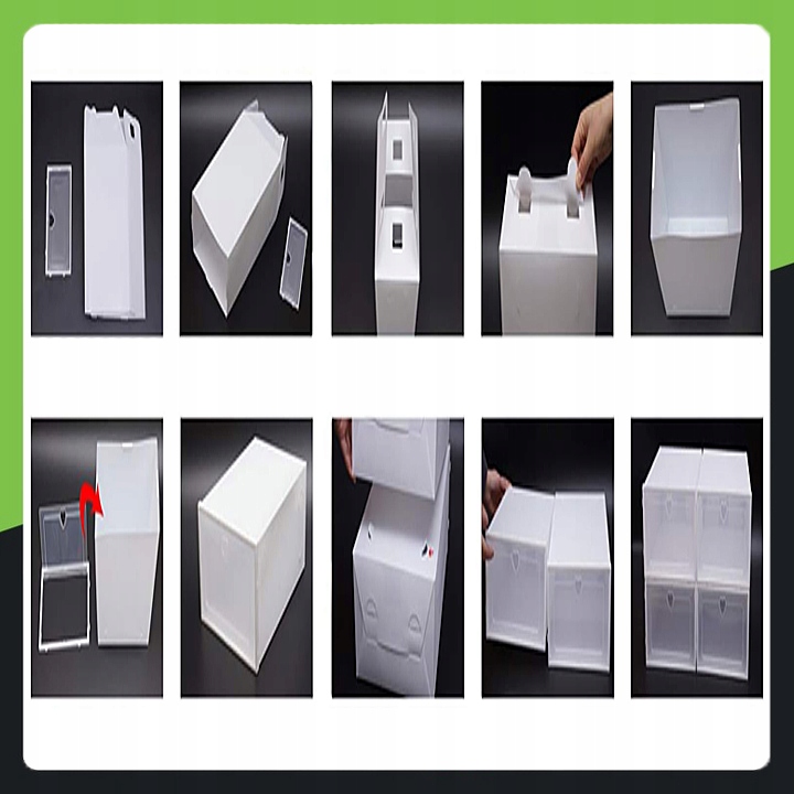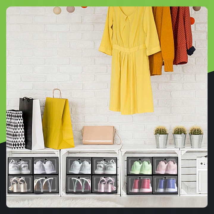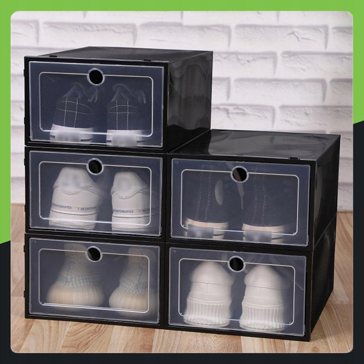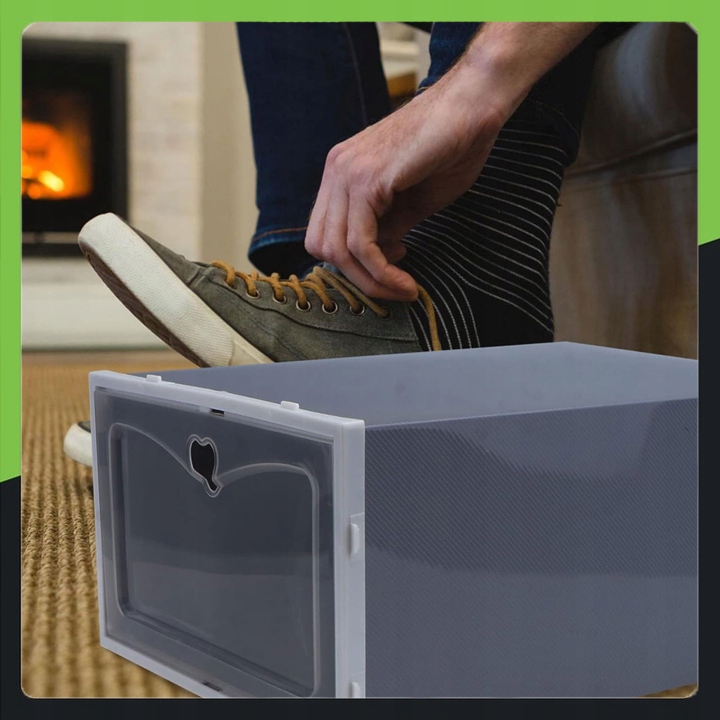 A набор из 10 практичных коробок для обуви с клапаном — решение, которое облегчит вашу жизнь. Благодаря полупрозрачному материалу вы легко найдете нужную пару, а вентиляционные отверстия сохранят обувь свежей. Коробки складываются и занимают минимум места, когда вы ими не пользуетесь.