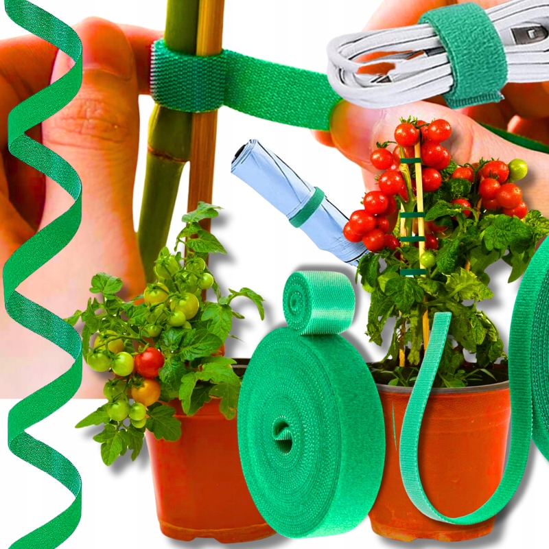 Зеленый цвет Благодаря ленте она идеально вписывается в окружающую среду, что делает ее идеальным решением для подвязывания таких растений, как томаты, деревья и кустарники. Благодаря мягкому материалу он не повреждает растения, обеспечивая им оптимальную стабилизацию.