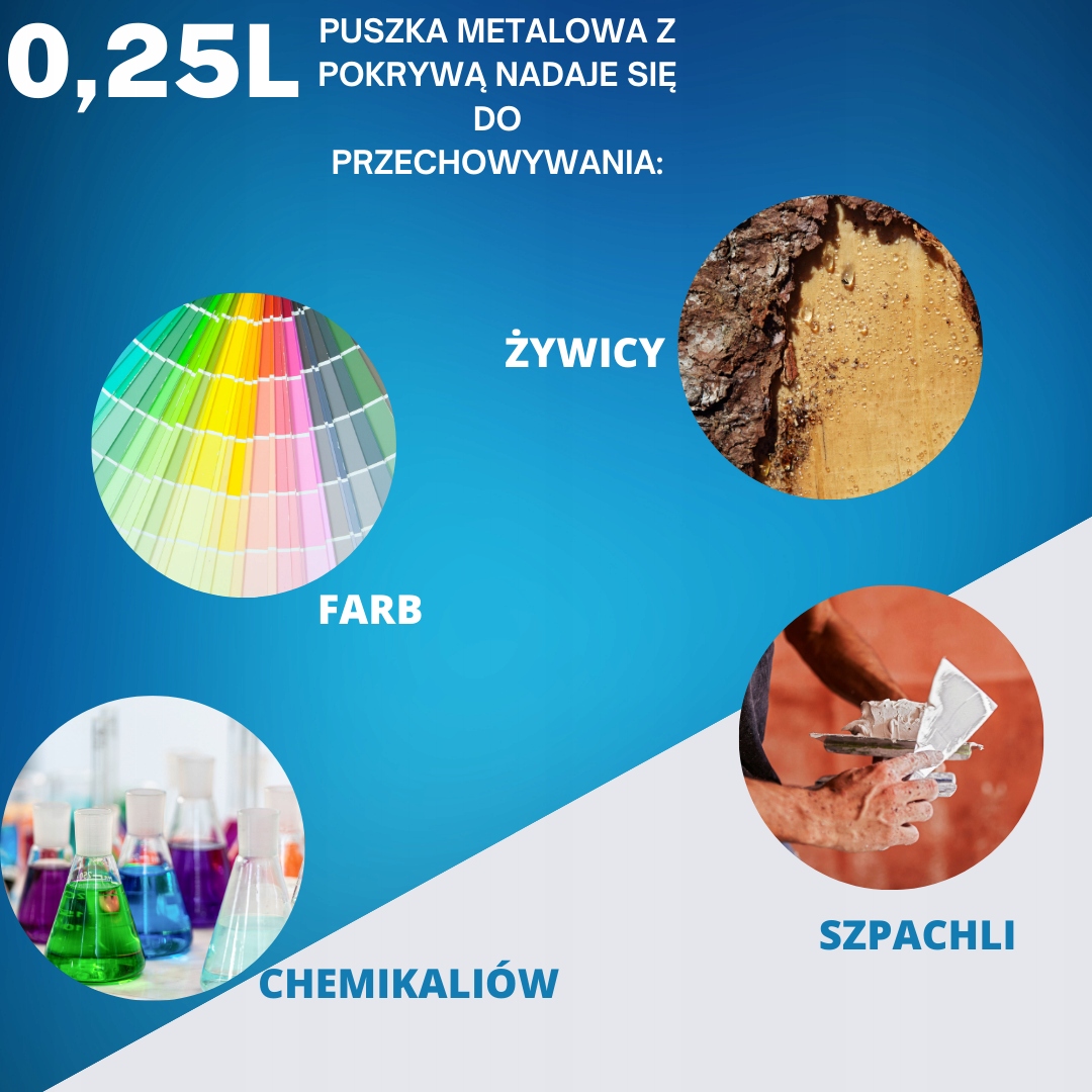 Пустая металлическая банка (жестяная банка) с крышкой - для хранения жидких и твердых химических веществ, таких как краски, лаки, шпаклевки, замазки, смолы и т.п.