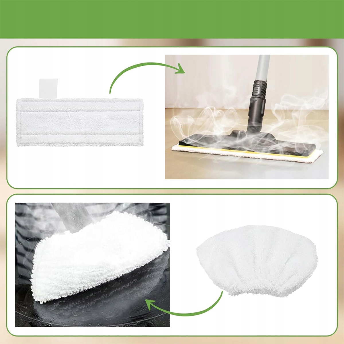 Вы получаете 10 белых салфеток (5 для насадки для пола + 5 для ручной насадки) для паровых принадлежностей вашего устройства для мытья окон Kärcher. Сменные салфетки можно использовать в течение 6–12 месяцев, чтобы поддерживать максимальную производительность отпаривателя.