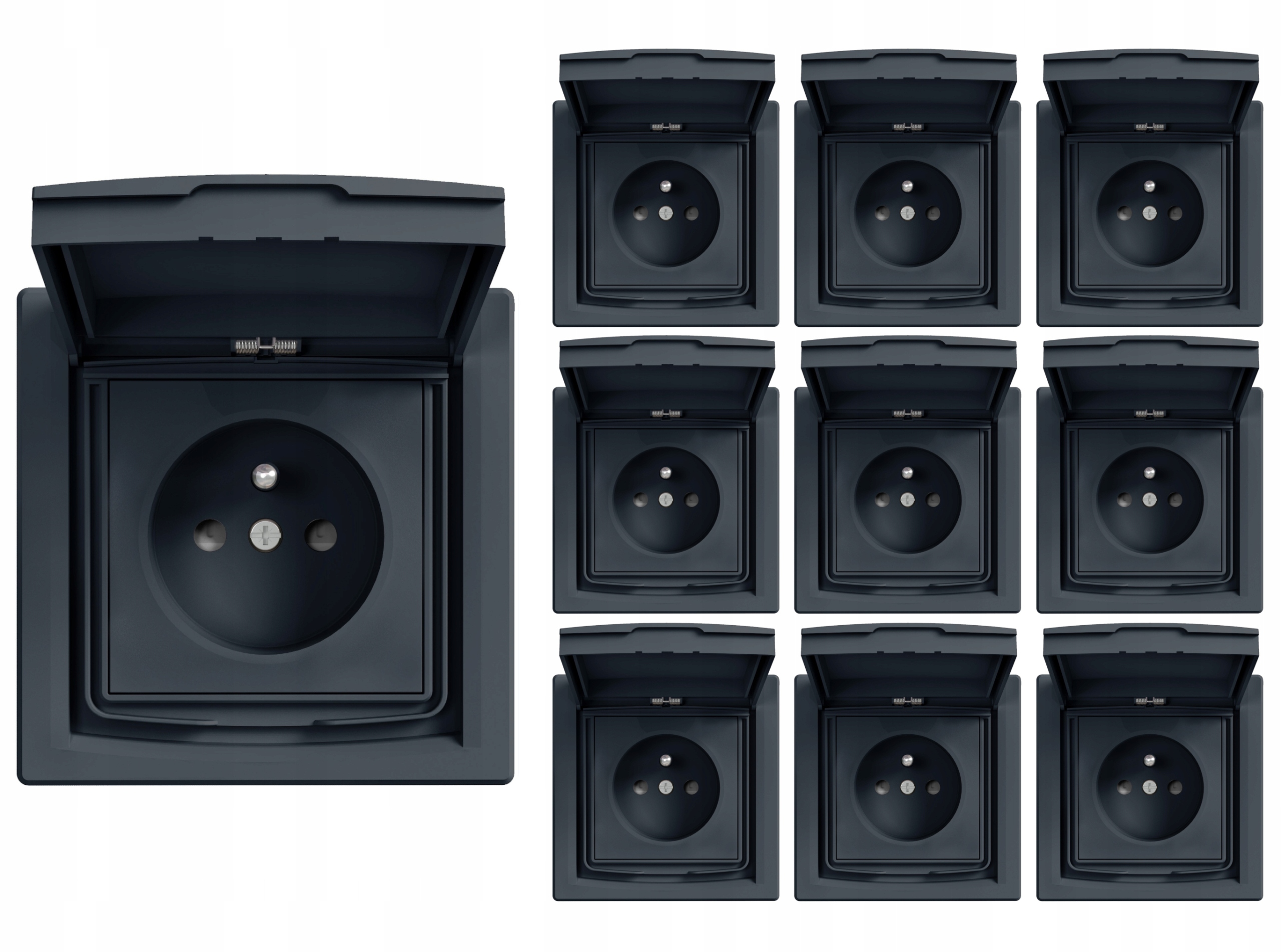 Набор из 10 шт. - Schneider Electric, Asfora, розетка 2P+PE, со шторками, 1-сторонняя, IP44, с рамкой, антрацит, EPH2800371