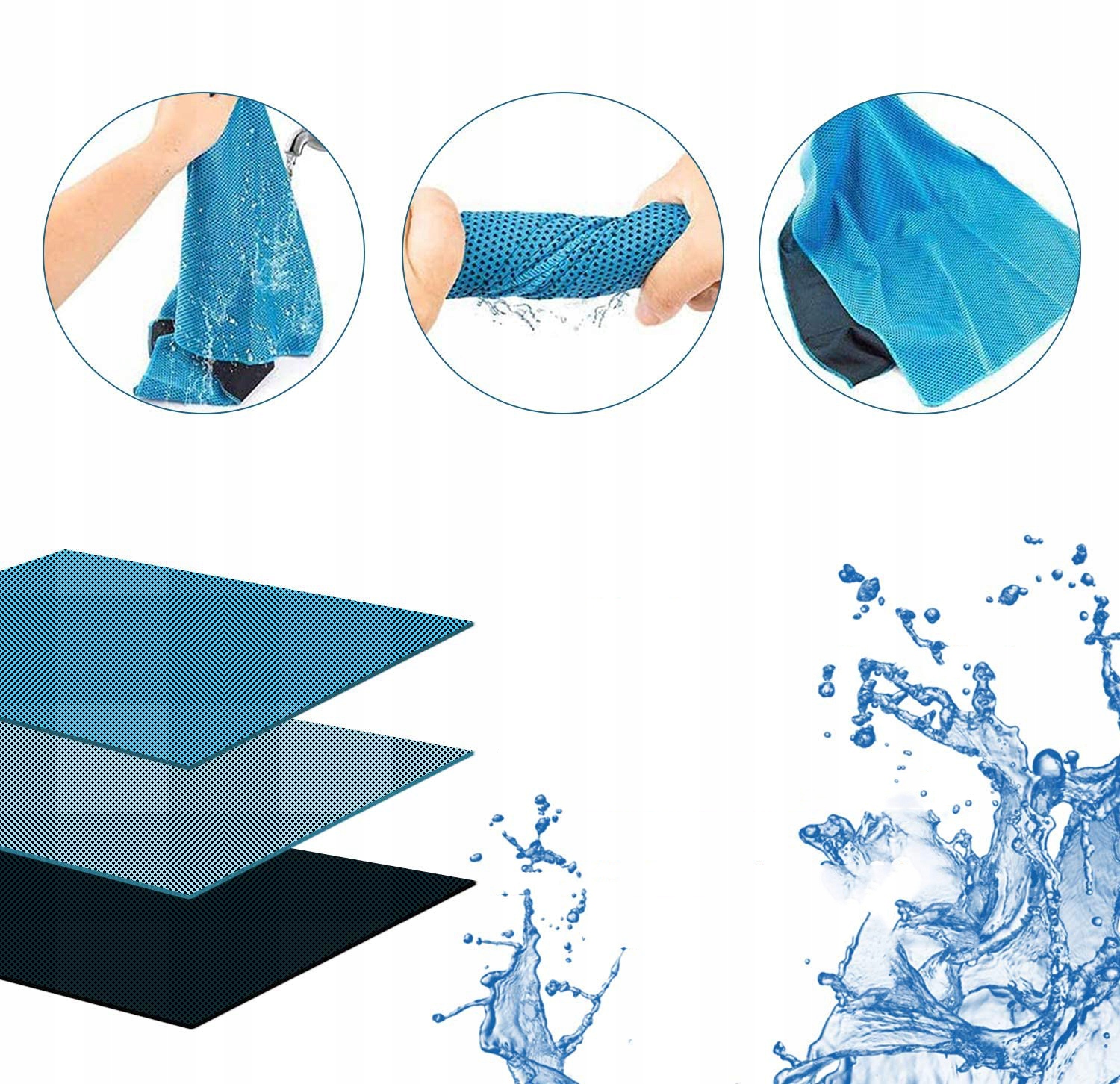 🧊 Охлаждение без химикатов - Охлаждающее полотенце с естественным охлаждающим эффектом, полностью не содержащее химикатов! Специально сотканная сетчатая структура охлаждающего полотенца обеспечивает сильный охлаждающий эффект за счет испарительного охлаждения. Просто намочите охлаждающее полотенце, отожмите его и встряхните 1–2 раза, чтобы активировать охлаждающий эффект.