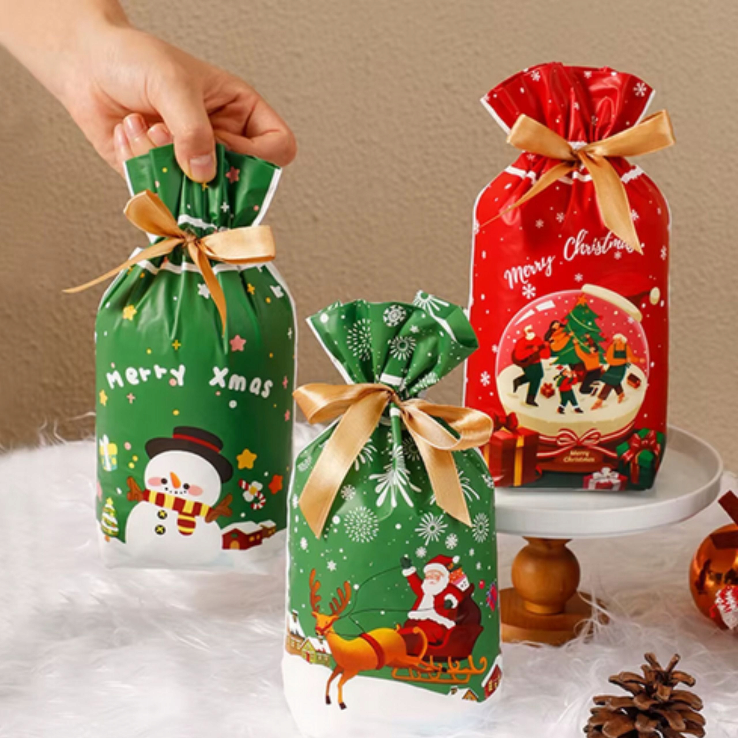 ✅ Набор из 10 красивых, красочных рождественских мешков — идеальный способ элегантно и быстро упаковать подарки без использования бумаги и скотча.