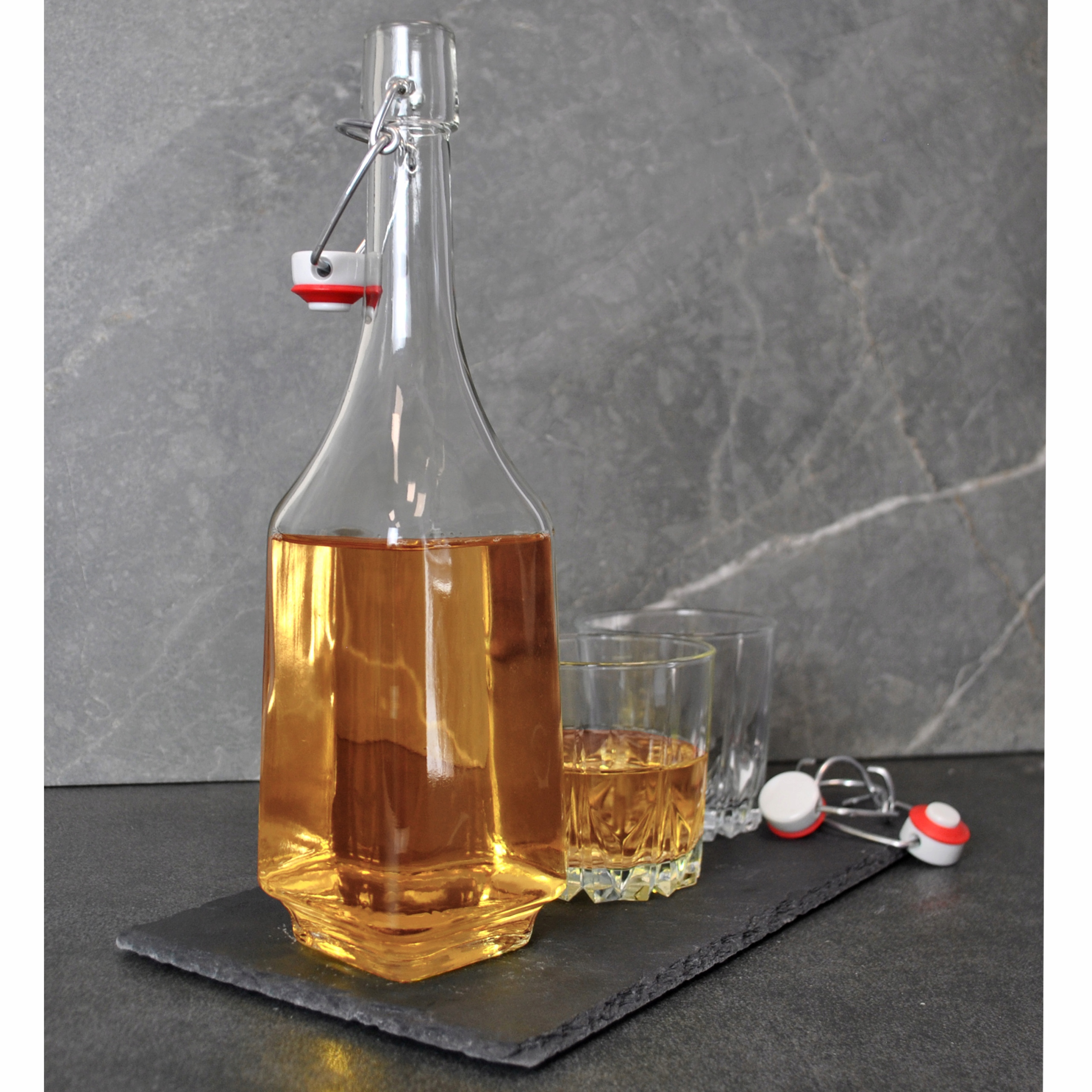 10 -кратный квадрат бутылки 700 мл Dikiy для натяжных стеклянных соков с зажимом 0,7 л.