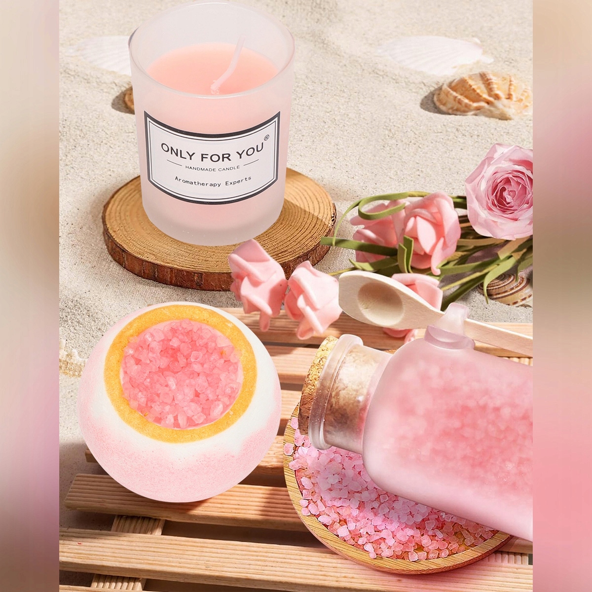 Свеча с ароматом розы горит без дыма и равномерно в течение длительного времени, соли для ванн в форме бомбочки изготовлены из натуральных материалов, содержат все натуральные питательные и успокаивающие ингредиенты, безопасны и экологичны. Позвольте ей насладиться роскошной, мечтательной пеной и расслабиться с напитком.