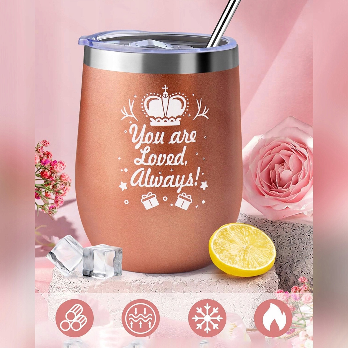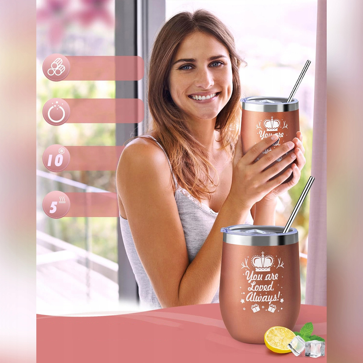 Изготовлена из нержавеющей стали, одобренной для контакта с пищевыми продуктами, двухслойная, с вакуумной изоляцией, прочная и долговечная. Эта термоизолированная кружка с крышкой сохраняет напитки горячими в течение 10 часов (холодные) и 5 часов (горячие). Печатная вдохновляющая цитата «Ты всегда любима!» передает положительные чувства и поддержку, которые сделают вашу жизнь ярче.